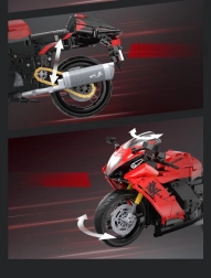 Die vordere und hintere Aufhängung sorgt für eine sanfte Bewegung des Modells und bildet das Verhalten eines echten Sportmotorrads originalgetreu nach.