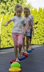 Der sensorische Pfad mit 11 farbigen Elementen kombiniert Kuppeln, Discs und Halbwalzen mit unterschiedlichen Texturen für ein abwechslungsreiches Training. Kinder können von „Stein“ zu „Stein“ springen, die Stabilität der Sprunggelenke, die gesamte Körperhaltung und die Grobmotorik entwickeln; Erwachsene nutzen ihn für aktives Gleichgewichtstraining und Fußmassage.