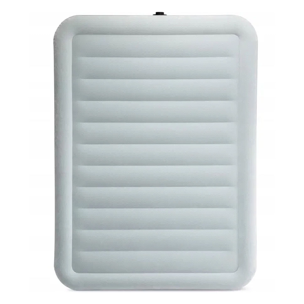 Die eingebaute elektrische Pumpe ermöglicht schnelles und müheloses Auf- und Abpumpen. Die Matratze besteht aus widerstandsfähigem PVC, hat ein stilvolles Muster und ist mit AirLock für zuverlässige Dichtheit zertifiziert. Die praktische Tasche erleichtert Transport und Lagerung, der Flicken hilft bei kleinen Reparaturen.