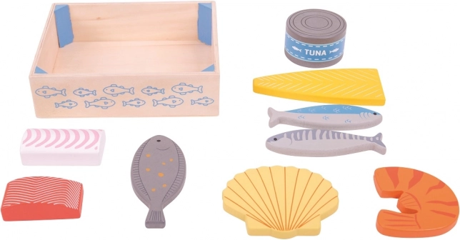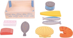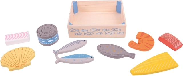 Diese Holzkiste ist voller frischer und gesunder Fische, wie Lachs, Thunfischdose und Garnelen. Eine großartige Ergänzung für die Holzküche für alle kleinen Köche. Bigjigs Toys Holzlebensmittel fördern das fesselnde Lernen über Herkunft und Zubereitung von Lebensmitteln, verbessern die Motorik der Kinder und bieten gleichzeitig Unterhaltung.
