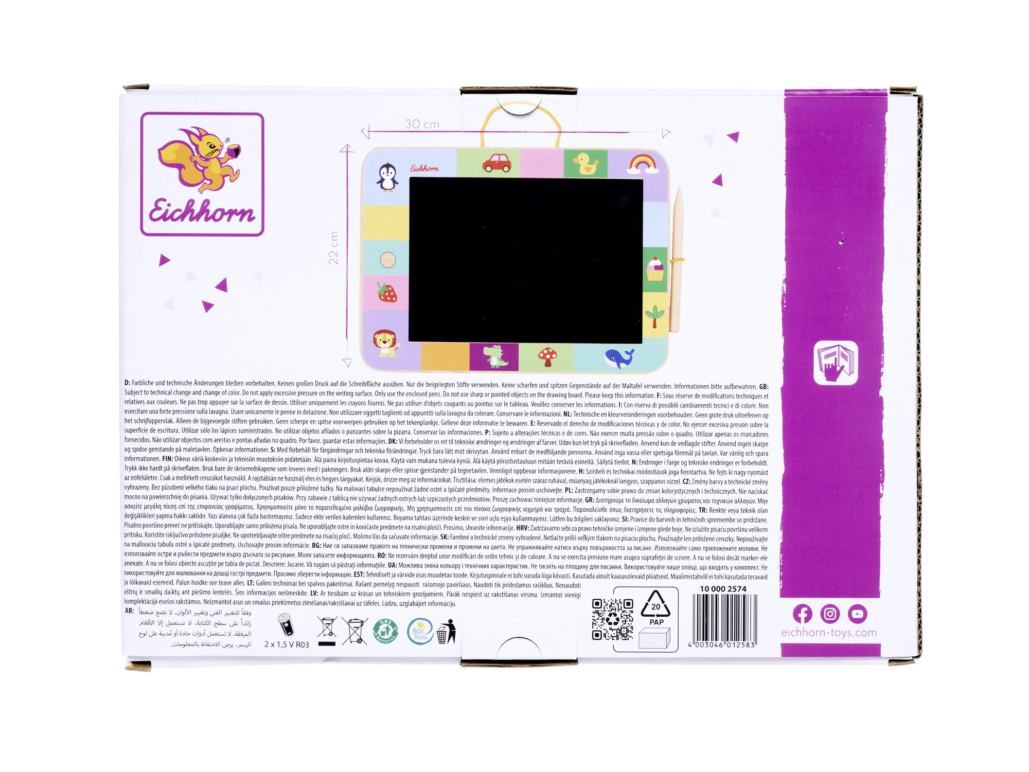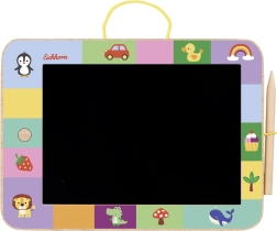 Die Holz-Zeichentafel ist eine tolle Wahl für kleine Künstler ab 3 Jahren. Die hochwertige Ausführung mit abgerundeten Ecken sorgt für sicheres Spielen, während die schwarze Fläche zum Malen, Schreiben und zu den ersten Buchstaben einlädt. Enthalten ist ein praktischer Holz-Stylus, der gut in der Kinderhand liegt.