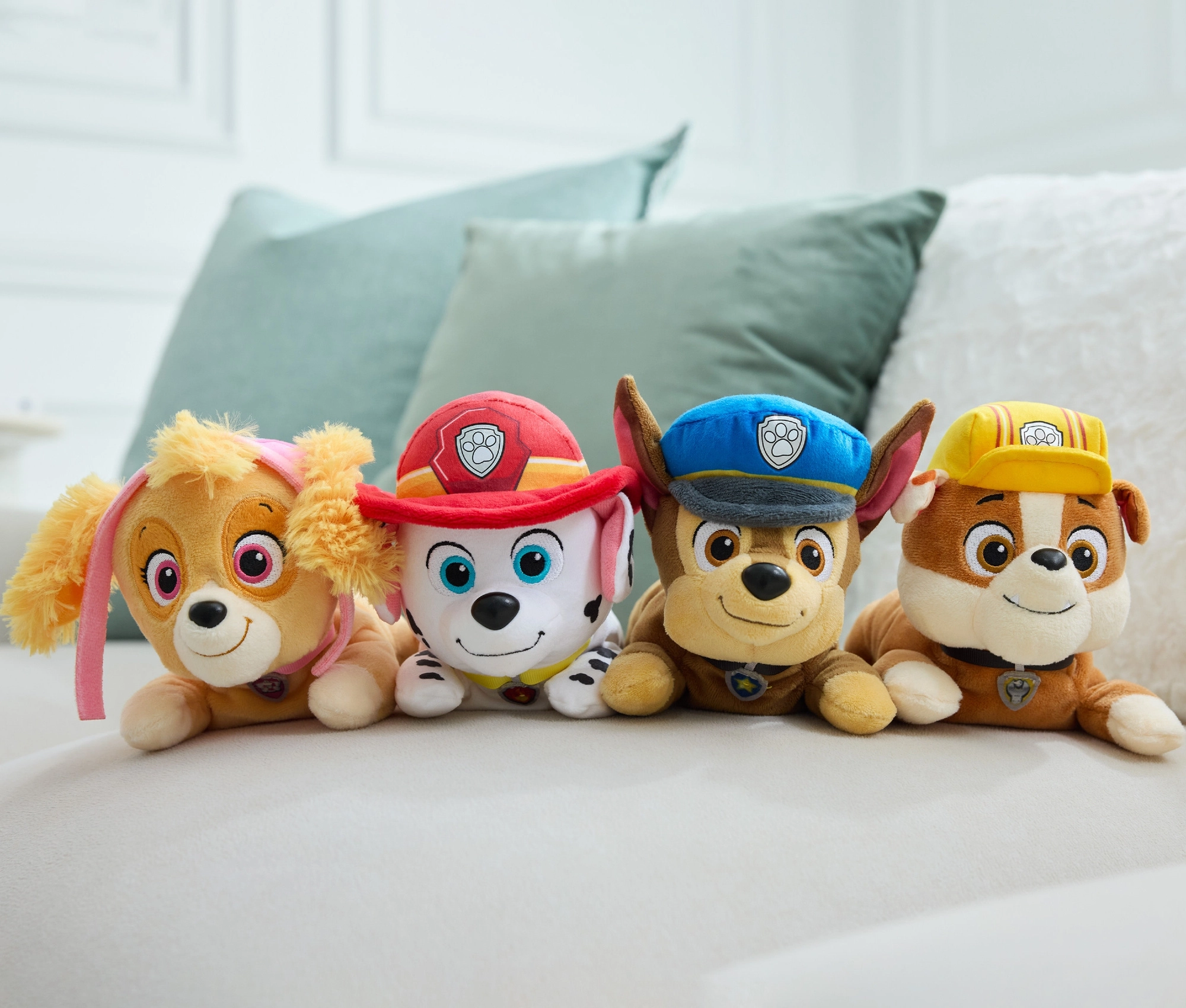 Sichere gestickte Augen und Nase ohne Kleinteile, eine leichte und anschmiegsame Konstruktion für einfaches Halten und Tragen sowie die ikonische Polizeimütze machen Chase zum perfekten Alltagsbegleiter.