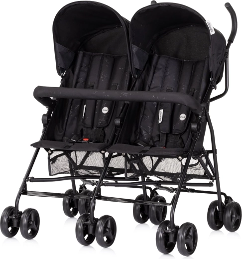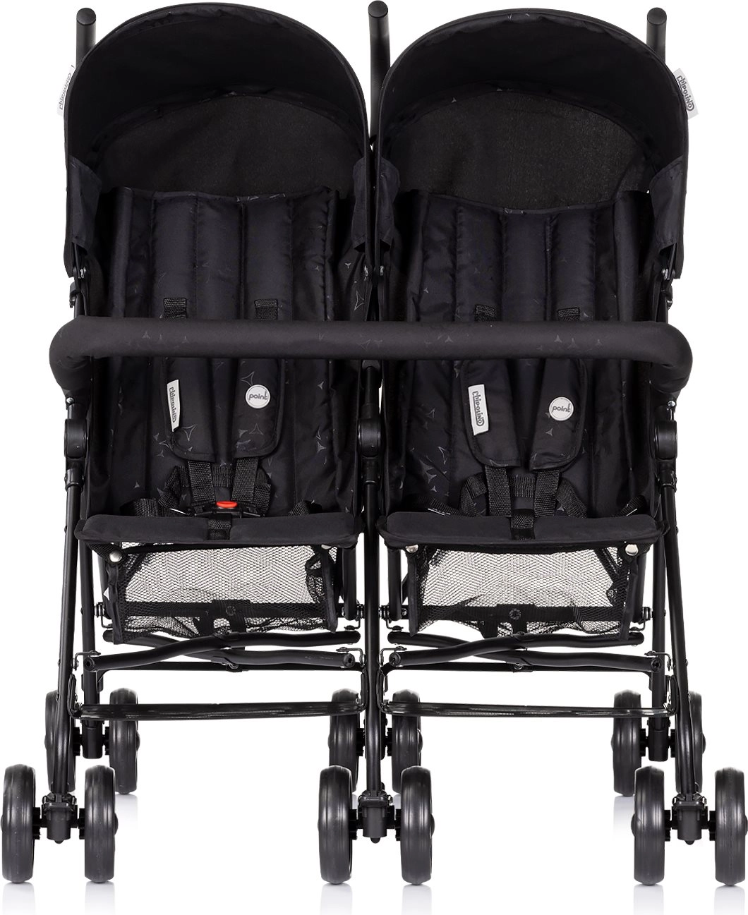 Der Chipolino Double Point Blackberry ist ein praktischer und zuverlässiger Kinderwagen für zwei Kinder nebeneinander. Der leichte Rahmen und das platzsparende Schirmfalten erleichtern Transport und Aufbewahrung, während verstellbare Rückenlehnen und weich gepolsterte 5-Punkt-Gurte den Kindern Sicherheit und Komfort bieten. Klappbare Verdecke schützen vor Sonne und der gemeinsame vordere Bügel sorgt für zusätzliche Sicherheit.