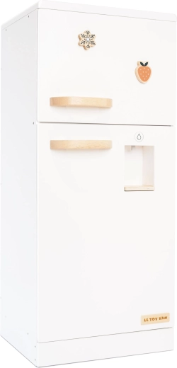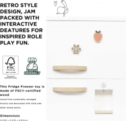 Dieser freistehende Kinderkühlschrank mit Gefrierfach bringt authentisches Küchen-Feeling in jedes Spielzimmer. Retro-Design, stabile Holzkonstruktion und durchdachte Details fördern Rollenspiele sowie die Feinmotorik. Der Kühlschrank ist mit der großen LE TOY VAN Küche kompatibel und dank magnetischer Türen und Zubehör macht er Kindern stundenlang Spaß.