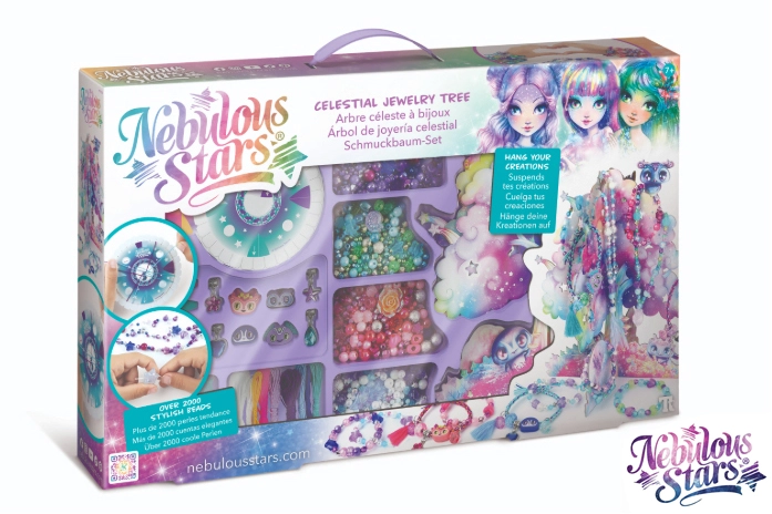 Gestalte deine eigenen, einzigartigen Armbänder und Halsketten mit dem magischen Nebulous Stars Set. Enthalten ist auch der dekorative Sternenbaum zum Ausstellen der fertigen Schmuckstücke, über 2000 Perlen, bunte Schnüre und Anhänger für endlose Kreativität. Ideal als Geschenk für kleine Kreative, die Perlenarbeiten und Fantasie lieben.