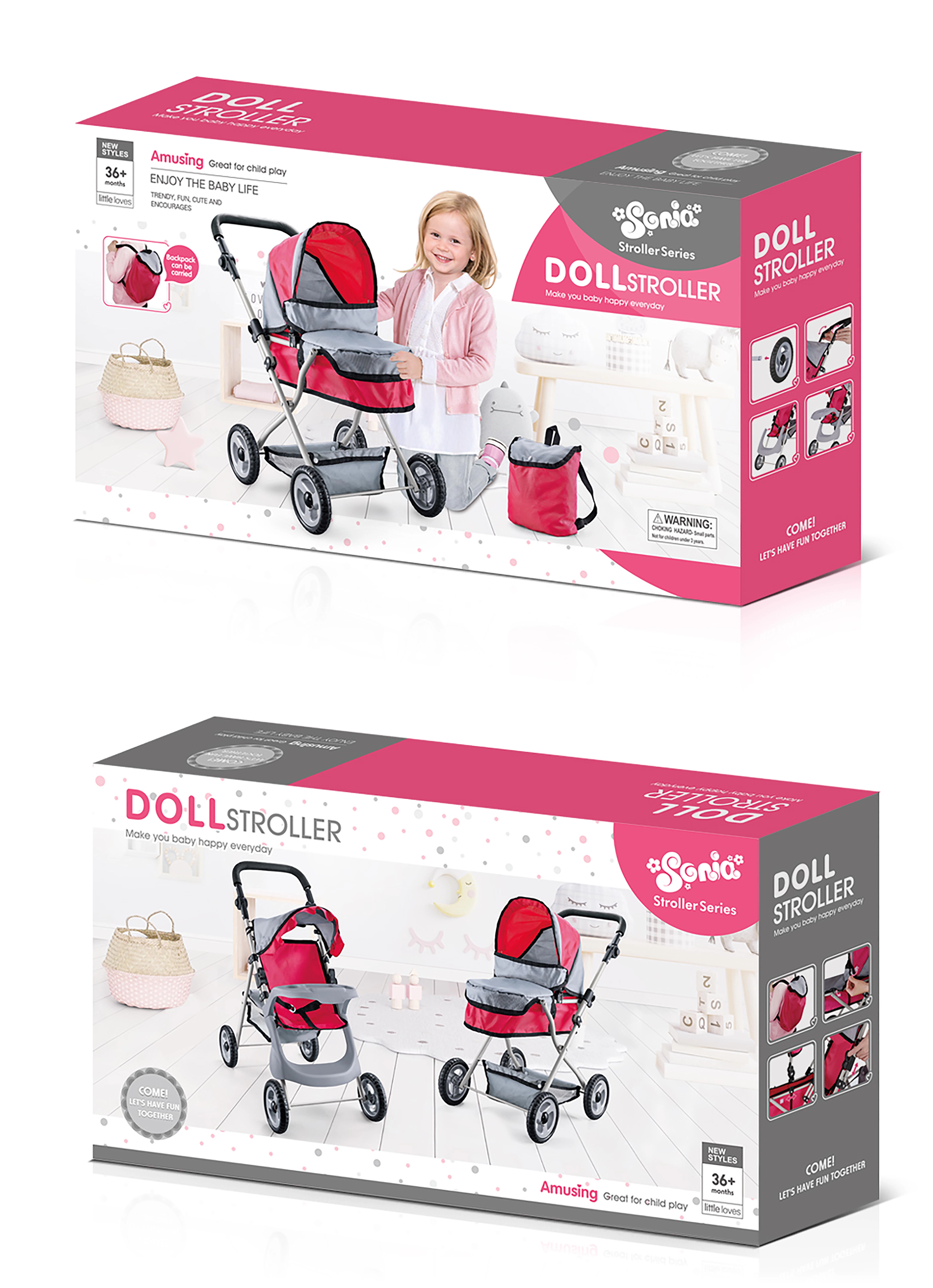 Der tiefe Puppenwagen mit einer Höhe von etwa 66 cm ist eine hervorragende Wahl für Kinder, die Fürsorgespiele lieben. Dank der bequemen Wanne können Puppen sicher ausruhen, während die robuste Konstruktion eine lange Lebensdauer und Stabilität beim Fahren gewährleistet.