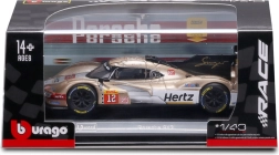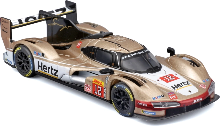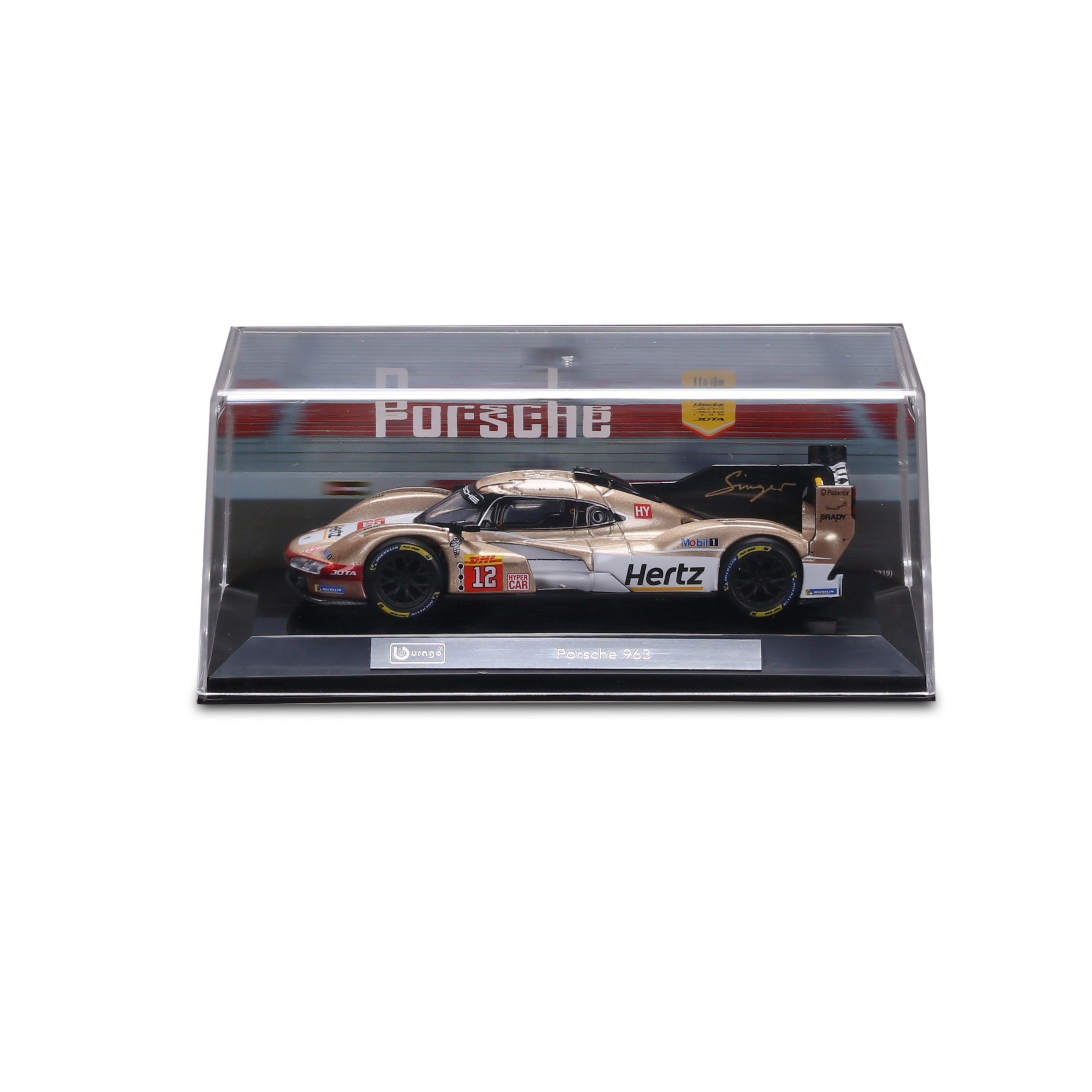 Dieses hochdetaillierte Modell des Porsche 963 im Maßstab 1:43 bietet den authentischen Look des Langstrecken-Spezialisten mit offiziellen Rennaufdrucken, realistischen Proportionen und aerodynamischen Elementen, einschließlich markantem Heckflügel und Diffusor. Die gold-weiße Rennlackierung mit Sponsorenlogos (z. B. Hertz, Mobil 1, DHL) unterstreicht den hochwertigen Renncharakter.