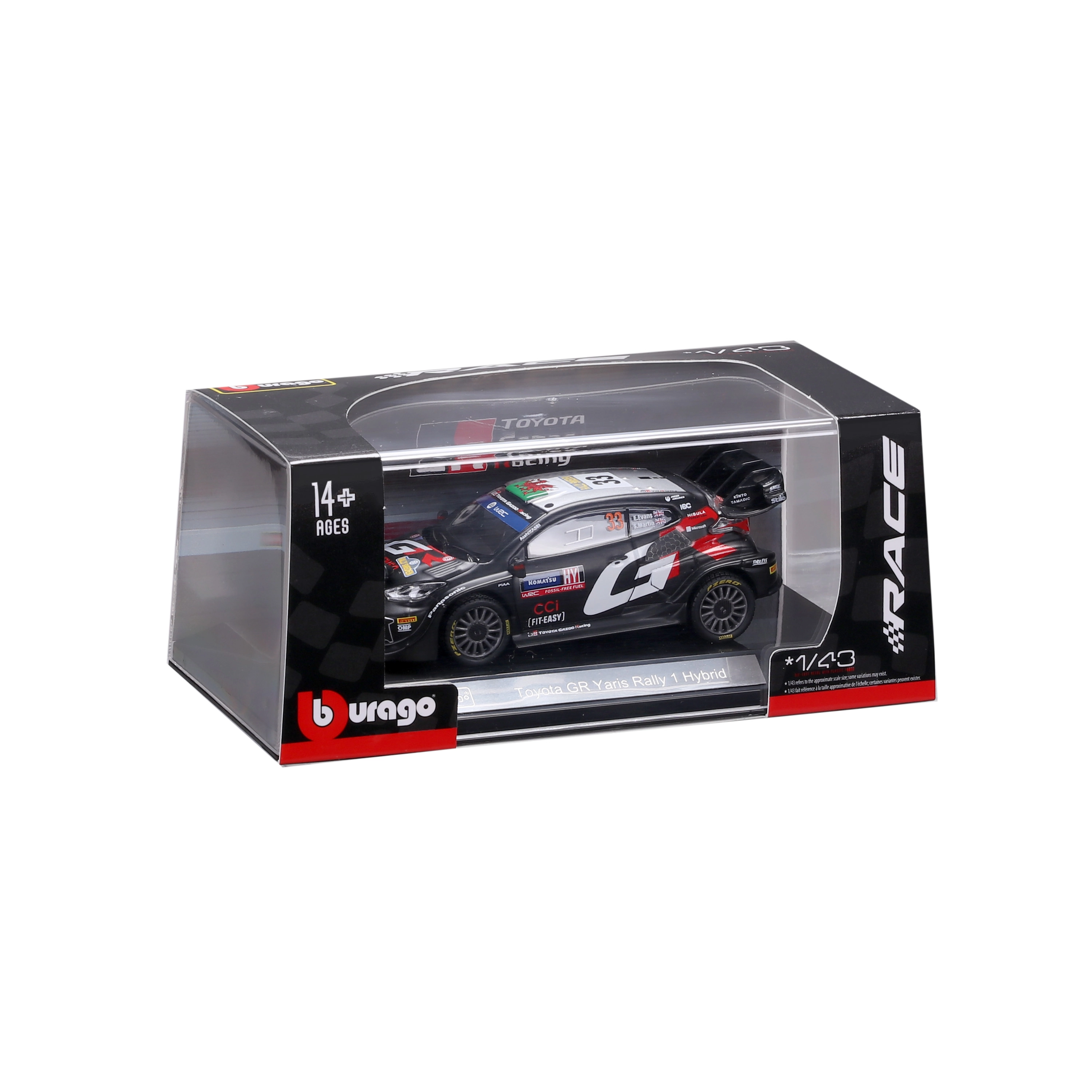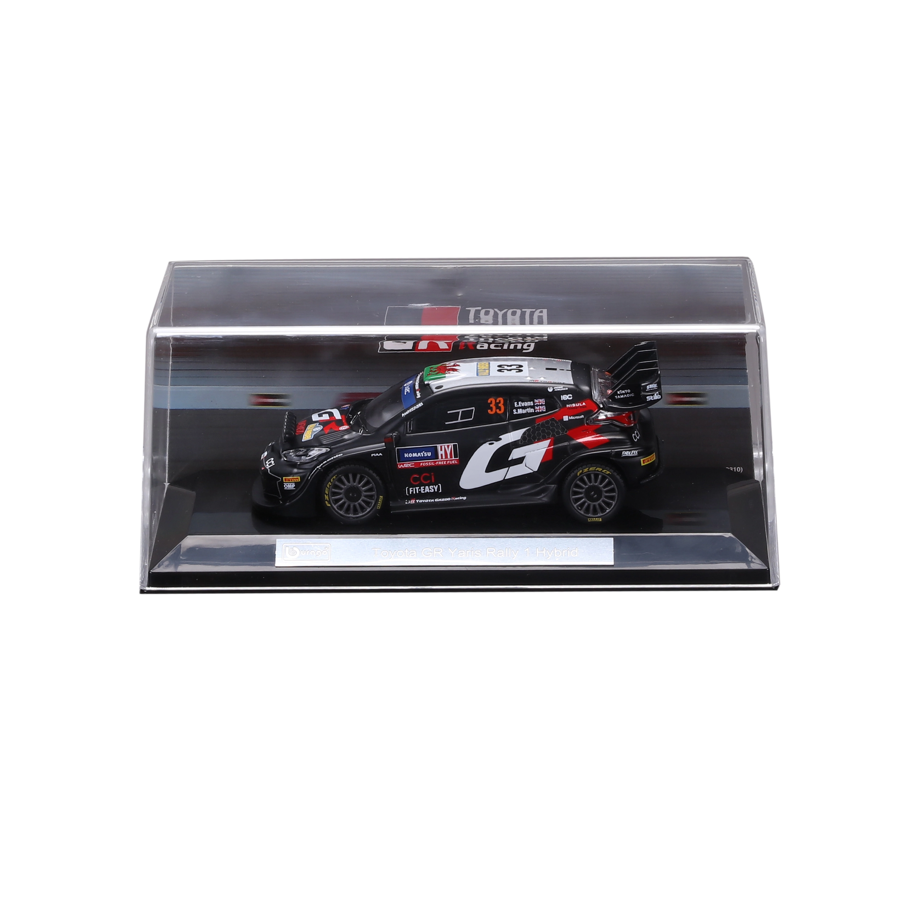 Erleben Sie die Atmosphäre der Rallye-Welt mit dem detailreichen Sammlermodell von Bburago im Maßstab 1:43, das den Toyota GR Yaris Rally1 Hybrid mit der Startnummer 33 in den Farben von TOYOTA GAZOO Racing originalgetreu wiedergibt. Das Modell besticht durch realistische Elemente wie Zusatzscheinwerfer, markanten Heckflügel und präzise Team-Decals.