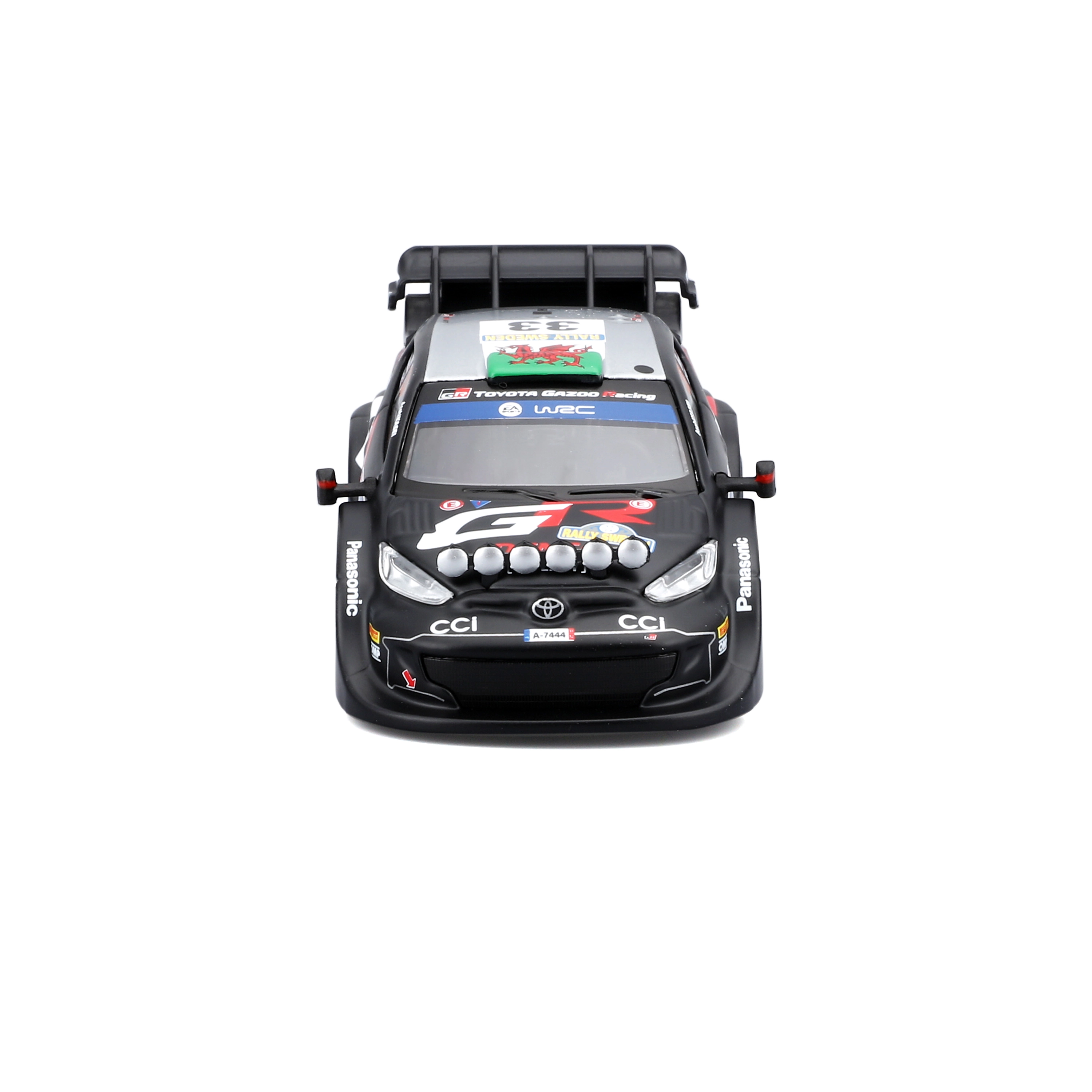 Detailreiche Decals, Zusatzscheinwerfer und aerodynamische Elemente entsprechen exakt dem realen Toyota GR Yaris Rally1 Rennwagen.