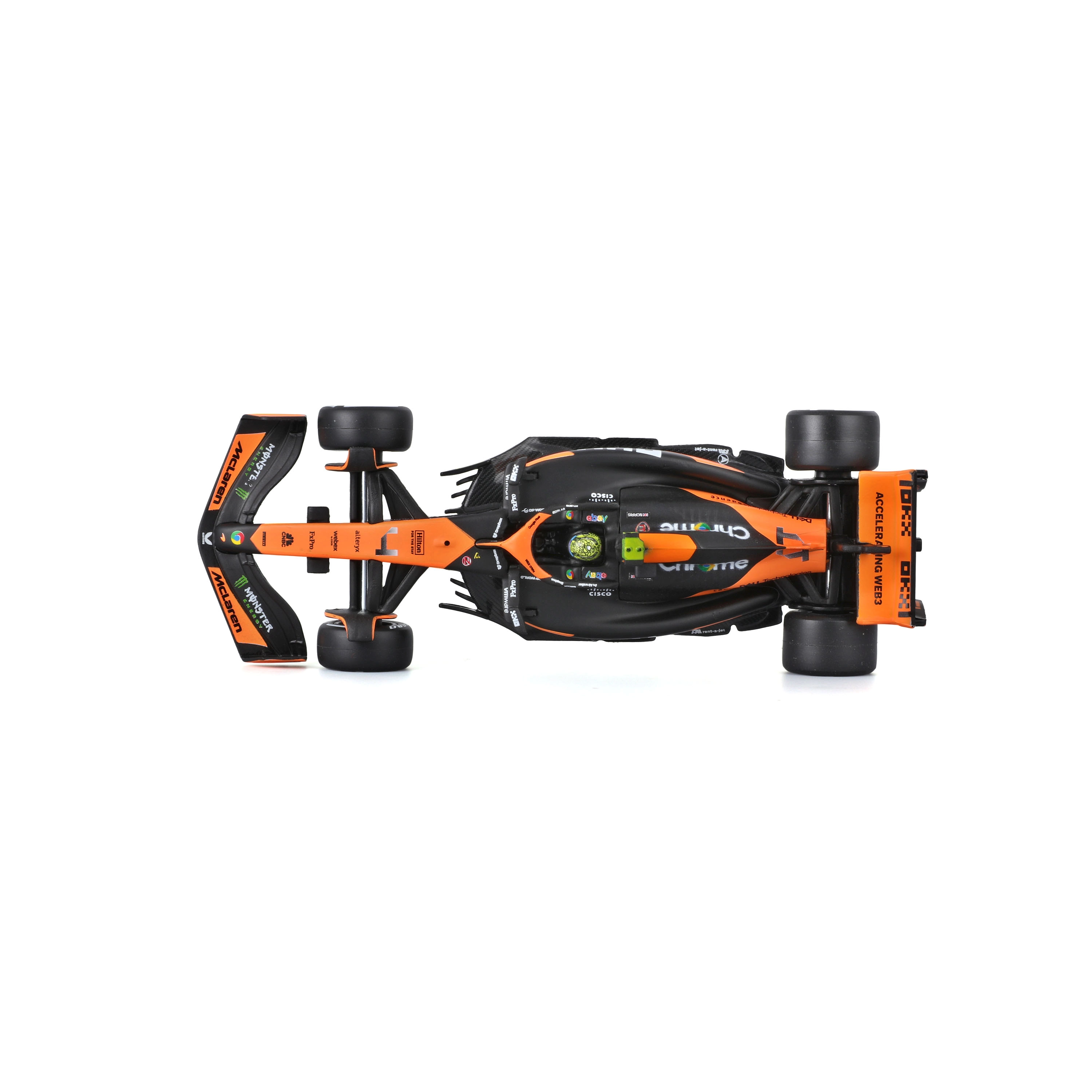Front- und Heckflügel, Halo sowie Slick-Reifen mit frei drehenden Rädern für realistische Optik und Handhabung.