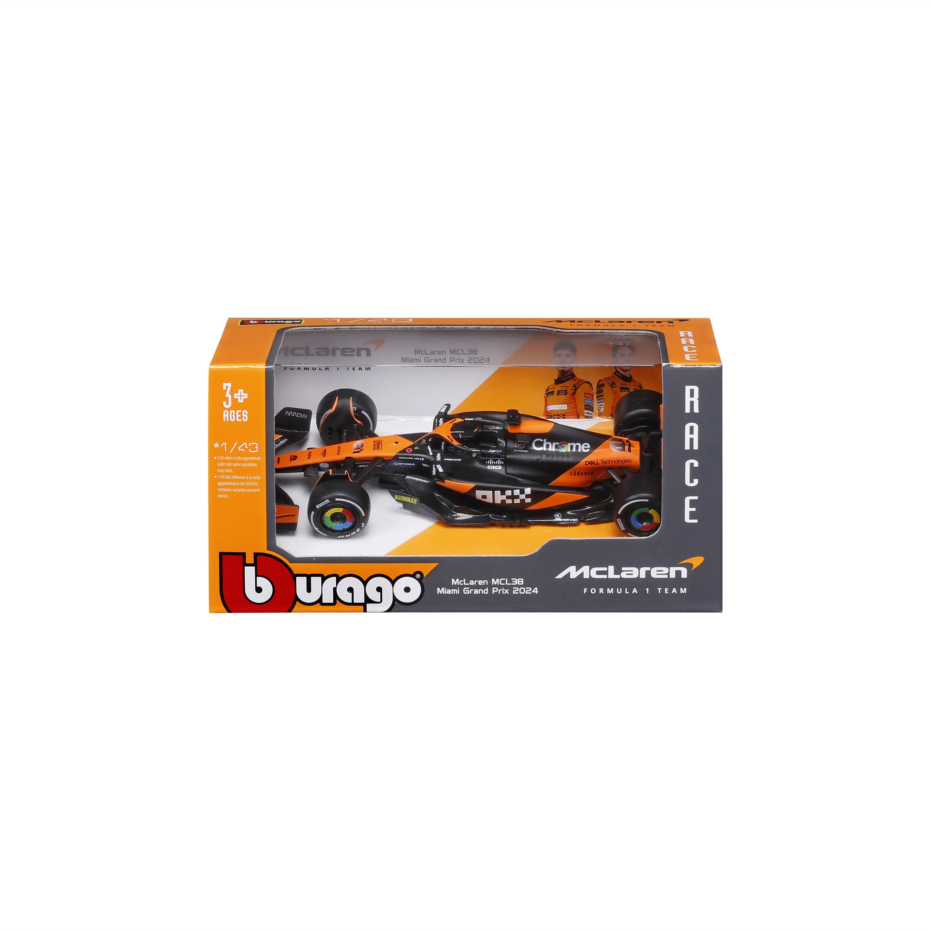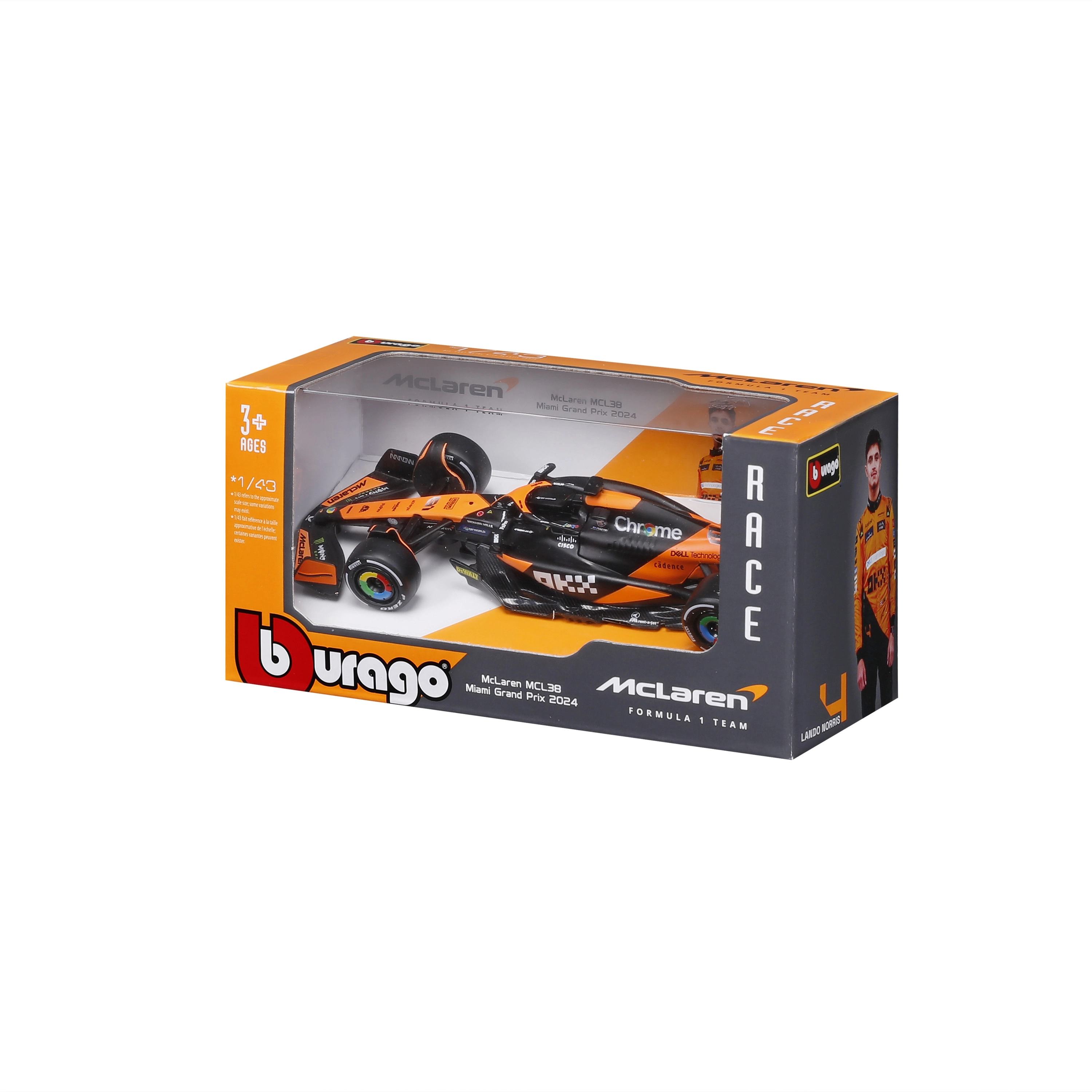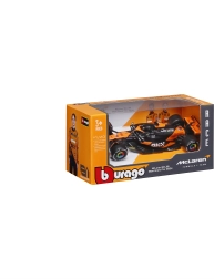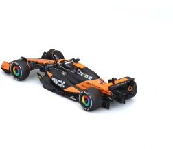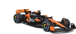 Das originalgetreue orange‑schwarze Farbschema mit Sponsorenlogos unterstreicht den realistischen Look des Modells und vermittelt ein Erlebnis wie auf der echten F1‑Strecke.