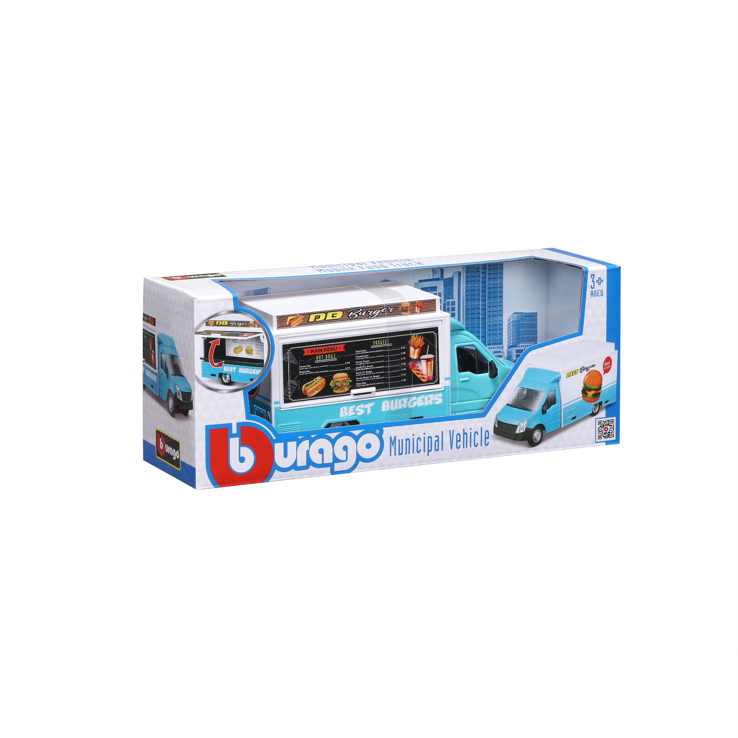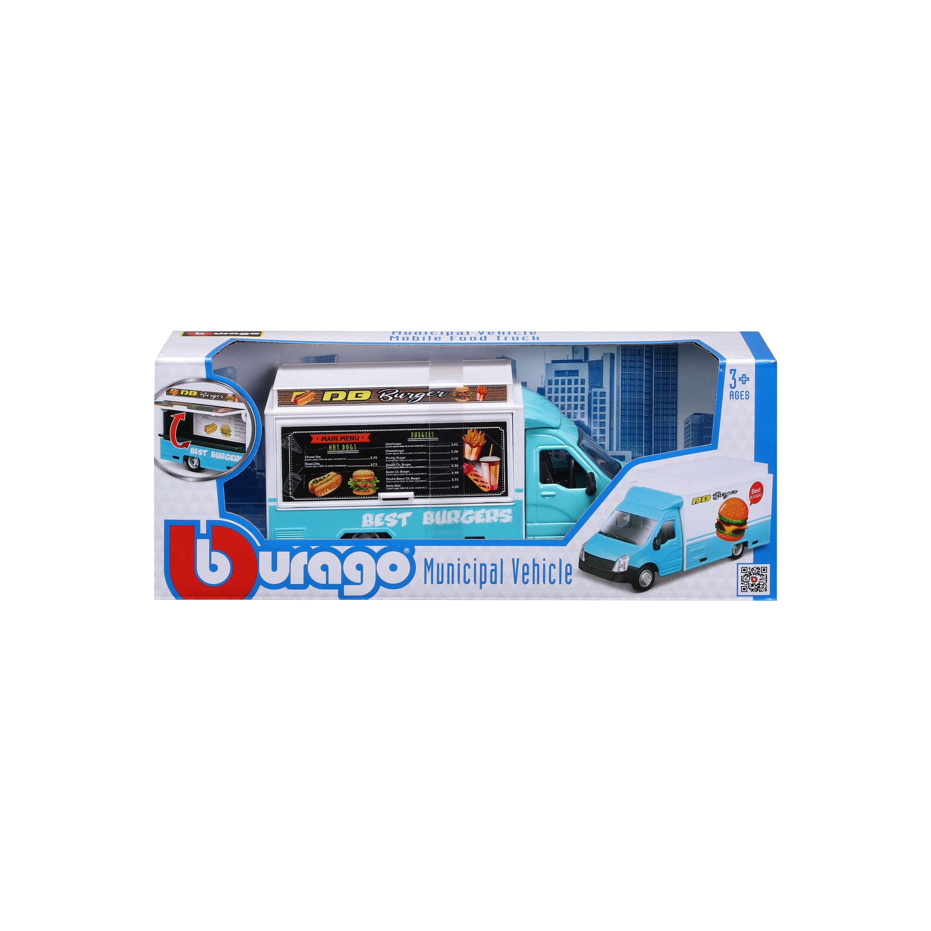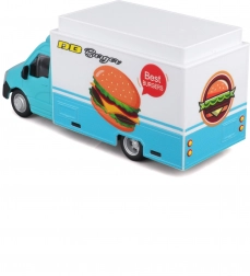 Entdecken Sie den Charme städtischer Dienste mit dem detailreich gestalteten Modell eines Burger-Foodtrucks im Maßstab 1:43. Die Kombination aus türkisfarbener Kabine und weißem Aufbau mit auffälliger „Best Burgers“-Grafik zieht sofort alle Blicke auf sich. Dank Freilauf und leichtgängigem Lauf ist das Fahrzeug bereit für actionreiche Fahrten oder die Präsentation im Regal.