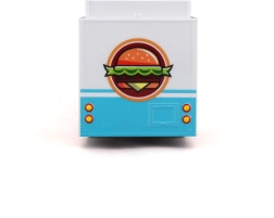 Der Druck der Speisekarte, die Burger-Grafik und geformte Lichter verleihen dem Truck einen authentischen Look, der Kinder sofort ins Spiel hineinzieht.