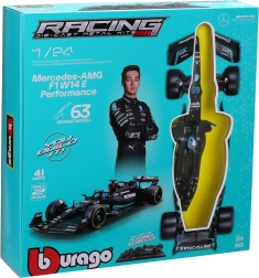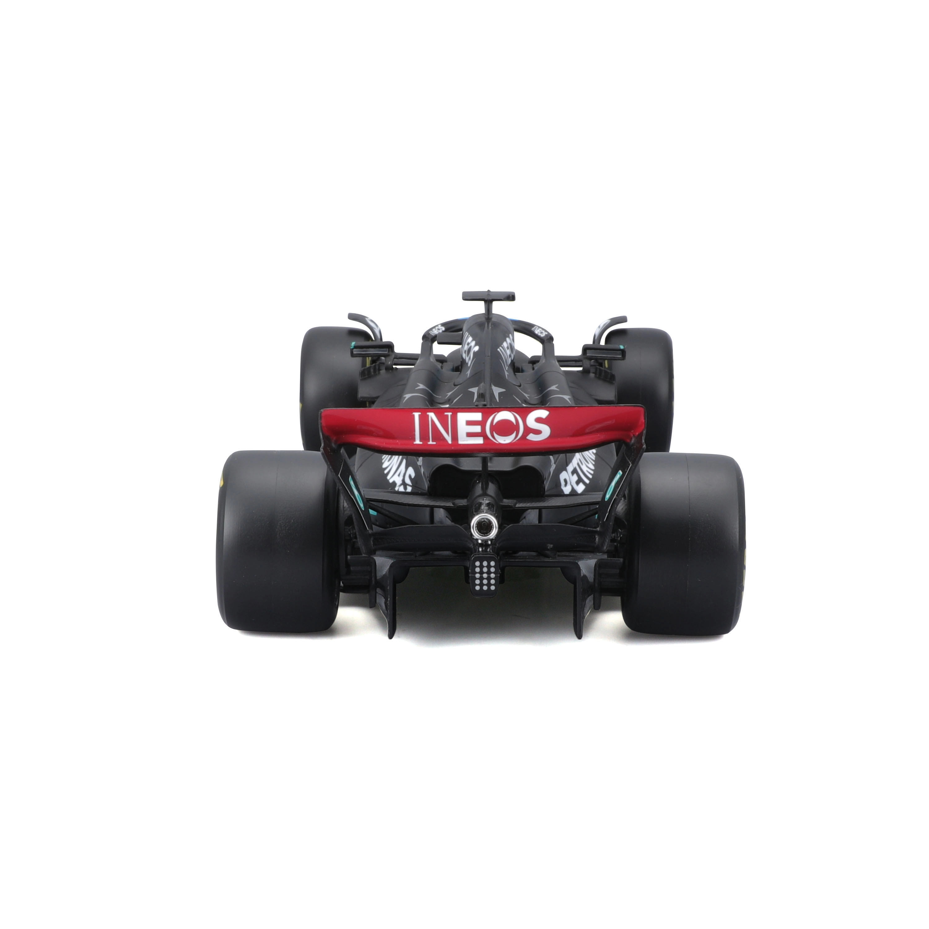 Dieses detailreiche Modell des Rennwagens MERCEDES-AMG PETRONAS Formula One verbindet hochwertige Die-Cast-Verarbeitung mit Bauspaß. Dank exakter Proportionen, realistischer aerodynamischer Elemente und originalgetreuer Sponsorenlogos erhalten Sie ein attraktives Ausstellungsstück für die Vitrine.