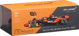 Genießen Sie die hochwertige Ausführung des McLaren MCL38 im orange-schwarzen Design, das den Wagen vom Miami Grand Prix 2024 originalgetreu nachbildet. Die realistische Karosserie, Flügel und Cockpitdetails mit Fahrerfigur machen dieses Modell zum perfekten Highlight jeder F1-Sammlung.