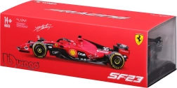 Dieses präzise gefertigte Modell des Ferrari SF-23 aus der Saison 2023 zeigt die charakteristischen aerodynamischen Elemente moderner Formelwagen: Front- und Heckflügel, Halo-Cockpitschutz, realistische Slick-Reifen sowie authentische Team- und Sponsorenbeklebungen. Dank des Maßstabs 1:24 kommen Proportionen und feine Karosseriedetails besonders gut zur Geltung.