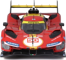 Rennaufkleber, Startnummer 50 und Sponsorenlogos betonen den authentischen Look des Modells Ferrari 499P.