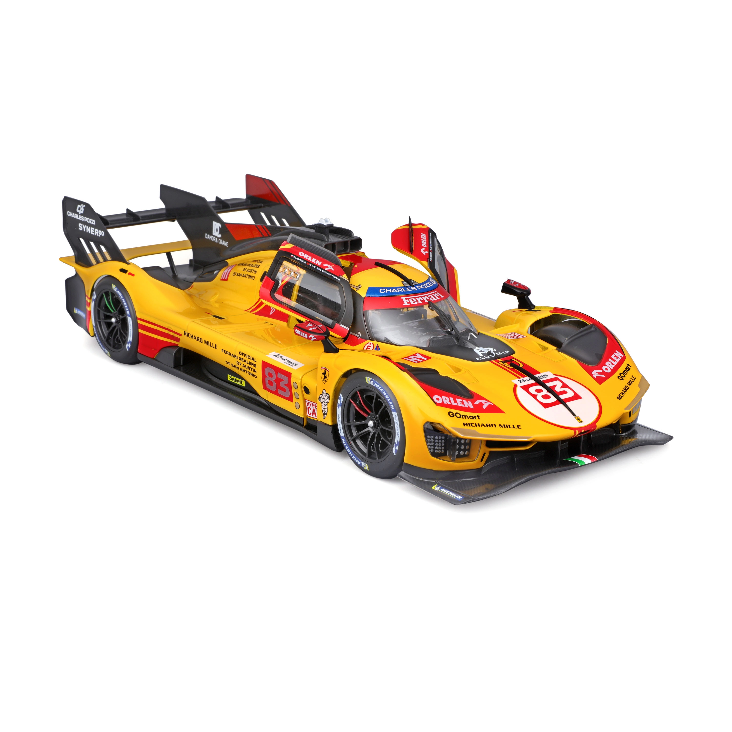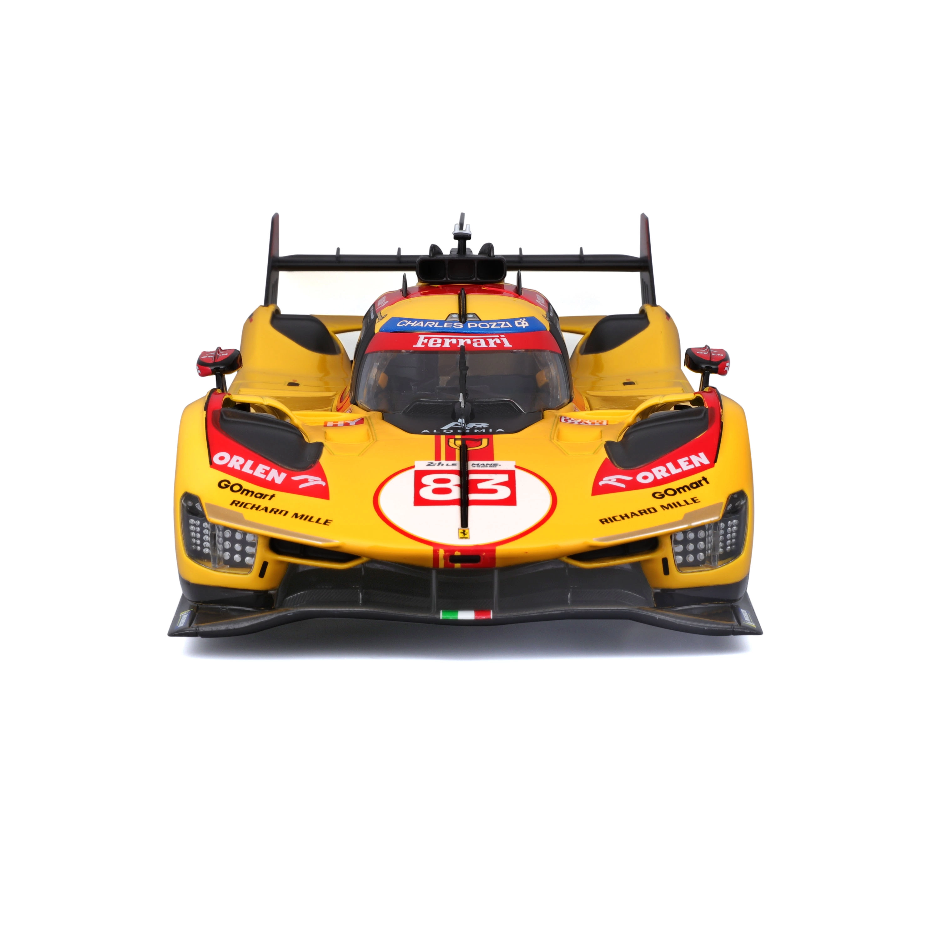 Entdecken Sie das hochwertig verarbeitete Modell Ferrari 499P in ikonischer Gelb‑Rot-Lackierung mit Startnummer 83 aus dem legendären Rennen 24H Le Mans 2024. Metallausführung mit präziser Oberflächenqualität, detailgetreuer Aerodynamik und realistischen Bremsscheiben unterstreichen den authentischen Look des Rennprototyps.