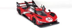 Originalgetreu gestaltete Karosserie des Ferrari 499P Modificata mit markantem Heckflügel, Diffusor und Rennaufklebern mit der Startnummer 24 für maximale Authentizität.