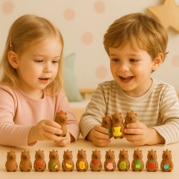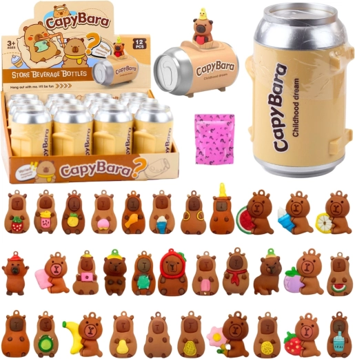 Jede Dose enthält eine zufällige Capybara am Anhänger und Karten. Das Auspacken ist voller Spannung und motiviert zum Tauschen und Sammeln.