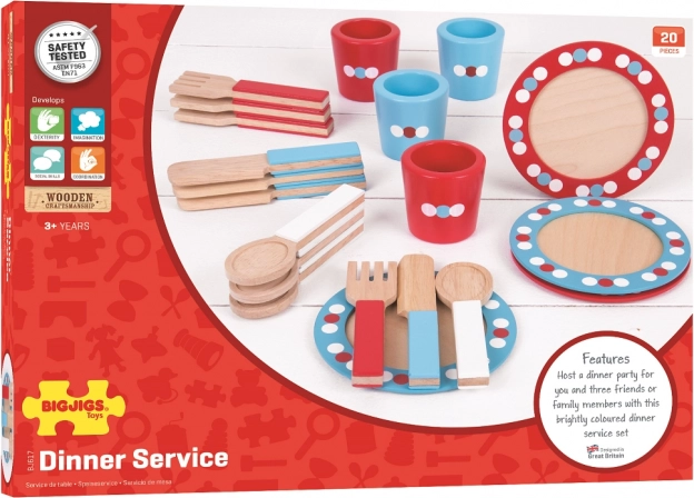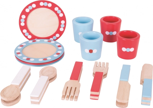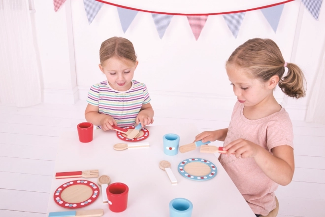 Bigjigs Toys Buntes Holzgeschirrset mit Punkten