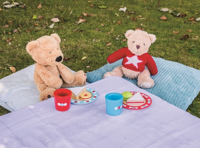 Dieses zauberhafte Teeservice aus Holz mit Punkten lädt zum gemeinsamen „Fünf-Uhr-Tee“ ein. Kinder üben Servieren, Höflichkeit und das Teilen und trainieren dabei Griff und Handkoordination. Farbige Details und durchdachte Maße machen es zu einem beliebten Zubehör für jede Spielküche.
