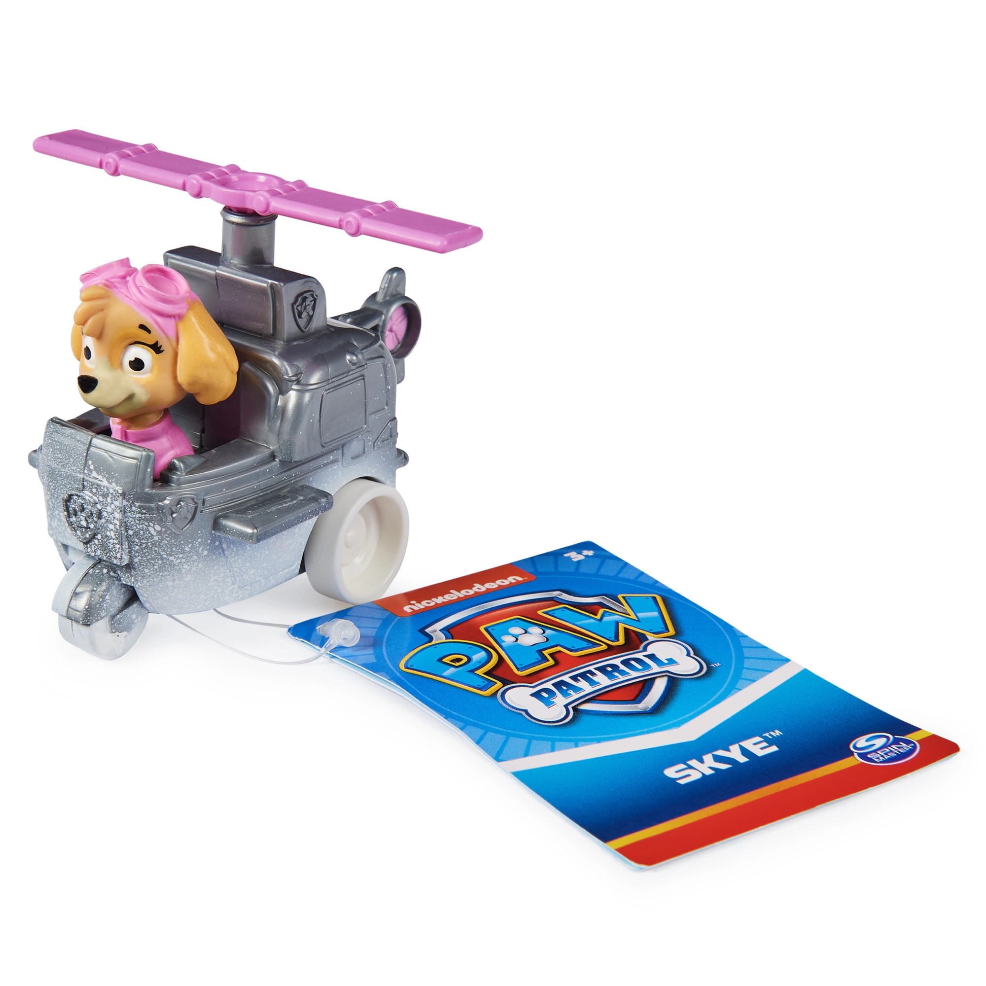 Gehe mit Skye in ihrem ikonischen silber-pinken Schnee-Helikopter auf Rettungseinsatz. Details mit „Schnee“-Effekt verleihen dem Fahrzeug eine winterliche Atmosphäre und beflügeln die Fantasie der Kinder. Dank der robusten Ausführung und der Größe von 8 cm ist er ideal für unterwegs und fürs Kinderzimmer.