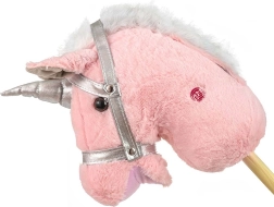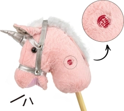 Dieses elegante rosa Hobby Horse begeistert kleine Reiterinnen und Reiter mit seinem weichen Plüschkopf, dem silbernen „Horn“ und dem bequemen Griff. Beim Drücken der Tasten am Kopf ertönen authentische Galopp- und Wieher-Geräusche, die das Pferdespiel noch realistischer machen. Der stabile Holzstab sorgt für Halt und eine einfache Handhabung auch für die Kleinsten.