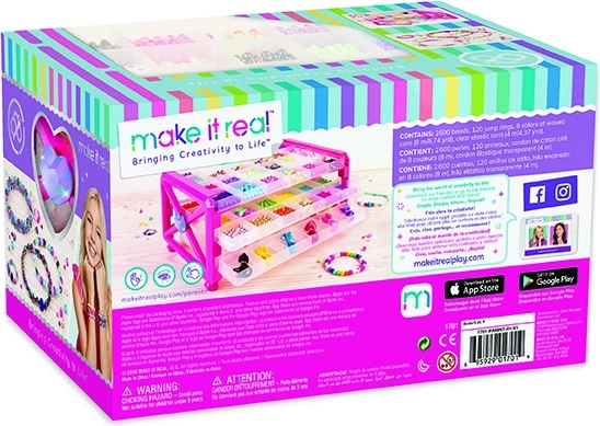 Alles Nötige ist griffbereit: 2600 Perlen für unendliche Kombinationen, 8 farbige, gewachste Schnüre mit einer Länge von 8 m jeweils und eine elastische Schnur mit 4 m Länge. Das Set ist ideal zum Basteln zu Hause, für Kurse und als Geschenk für kleine Schmuckdesigner.