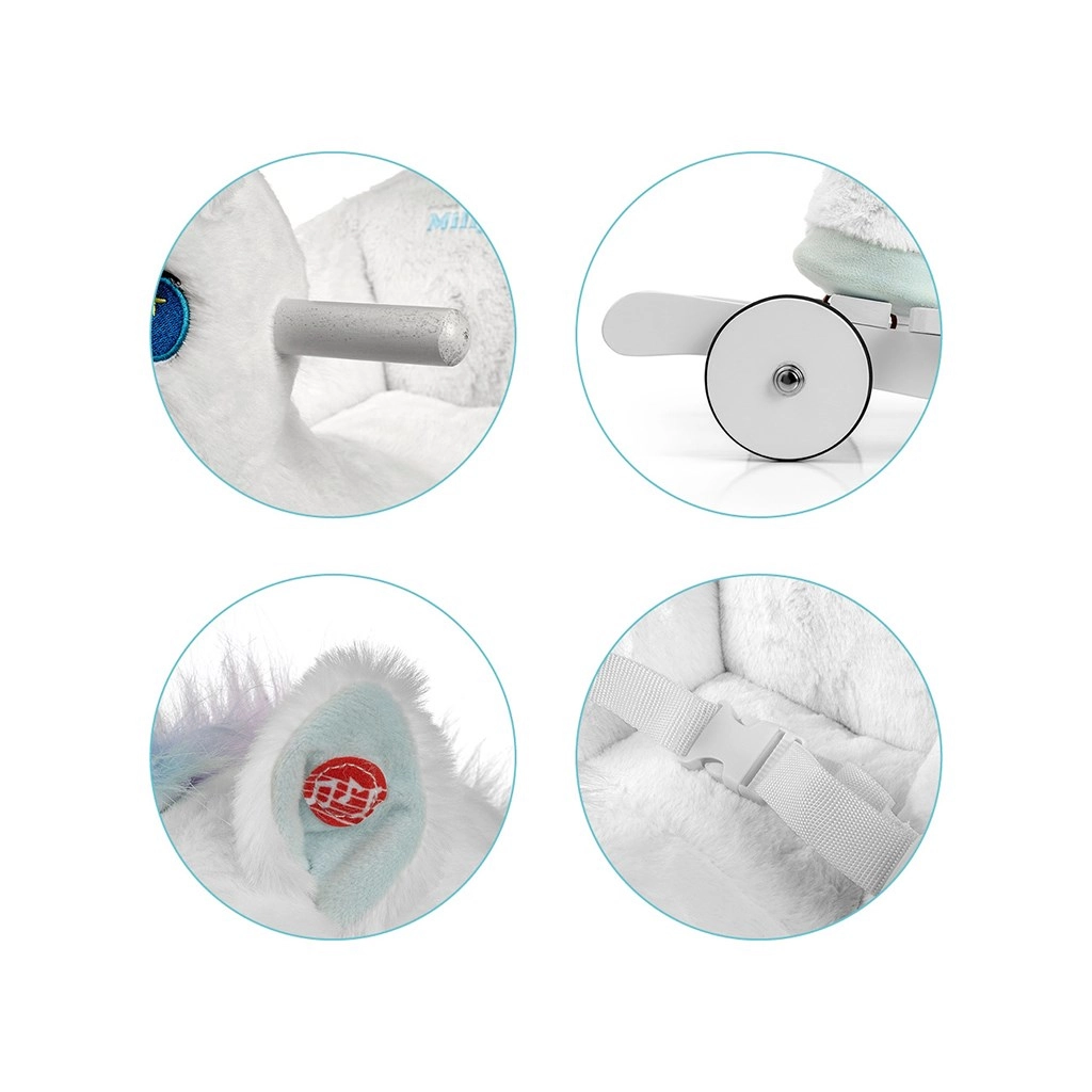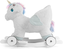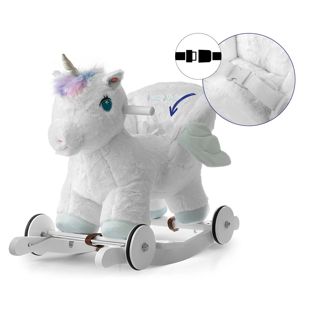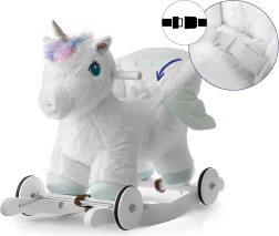 In wenigen Sekunden wechseln Sie vom Schaukel- in den Fahrmodus – die klappbaren Rollen machen aus dem Einhorn ein niedliches Fahrspielzeug für die Nutzung im Innenbereich. Die interaktiven Ohren spielen auf Druck Galopp- und fröhliche Wiehergeräusche ab, was die sensorische Wahrnehmung fördert. Das Spielen auf dem Schaukel-Einhorn unterstützt die Entwicklung von motorischer Koordination, Vorstellungskraft und Gleichgewichtssinn.