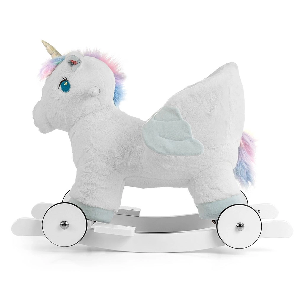 Die klappbaren Rollen verwandeln das Einhorn im Handumdrehen von einem Schaukeltier in ein fahrbares Gefährt. Perfekt für variables Spielen im Innenbereich.
