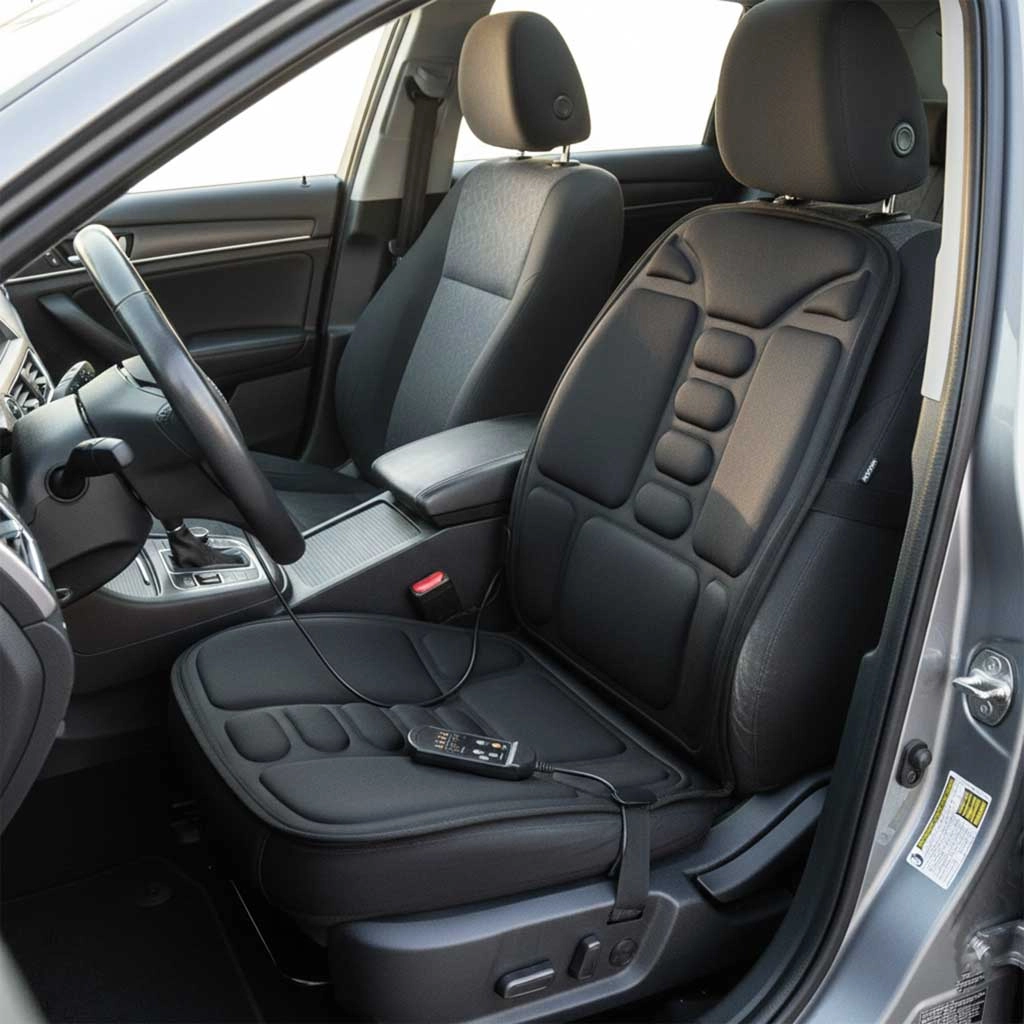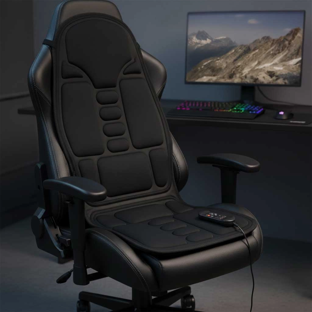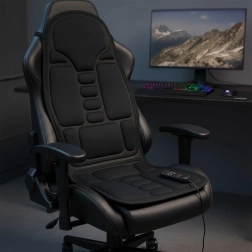 Diese komfortable Massage-Sitzauflage bietet eine gezielte Vibrationsmassage für Rücken und Oberschenkel und fördert dank integrierter Heizfunktion die Durchwärmung der Muskulatur. Die einfache Befestigung mit elastischen Bändern sorgt für Stabilität auf Bürostuhl, Gaming-Sessel und Autositz.