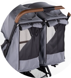Der CHIPOLINO Twinity Tiramisu ist ein zuverlässiger doppelter Sportkinderwagen für Zwillinge oder Geschwister. Dank des leichten Aluminiumrahmens und der cleveren 3D-Automatikfaltung ist er im Handumdrehen einhändig zusammengeklappt. Zwei separat verstellbare Rückenlehnen und Fußstützen sorgen für individuellen Komfort, während breite Verdecke mit Sichtfenster und Sonnenschutz vor Wetter und Sonne schützen.