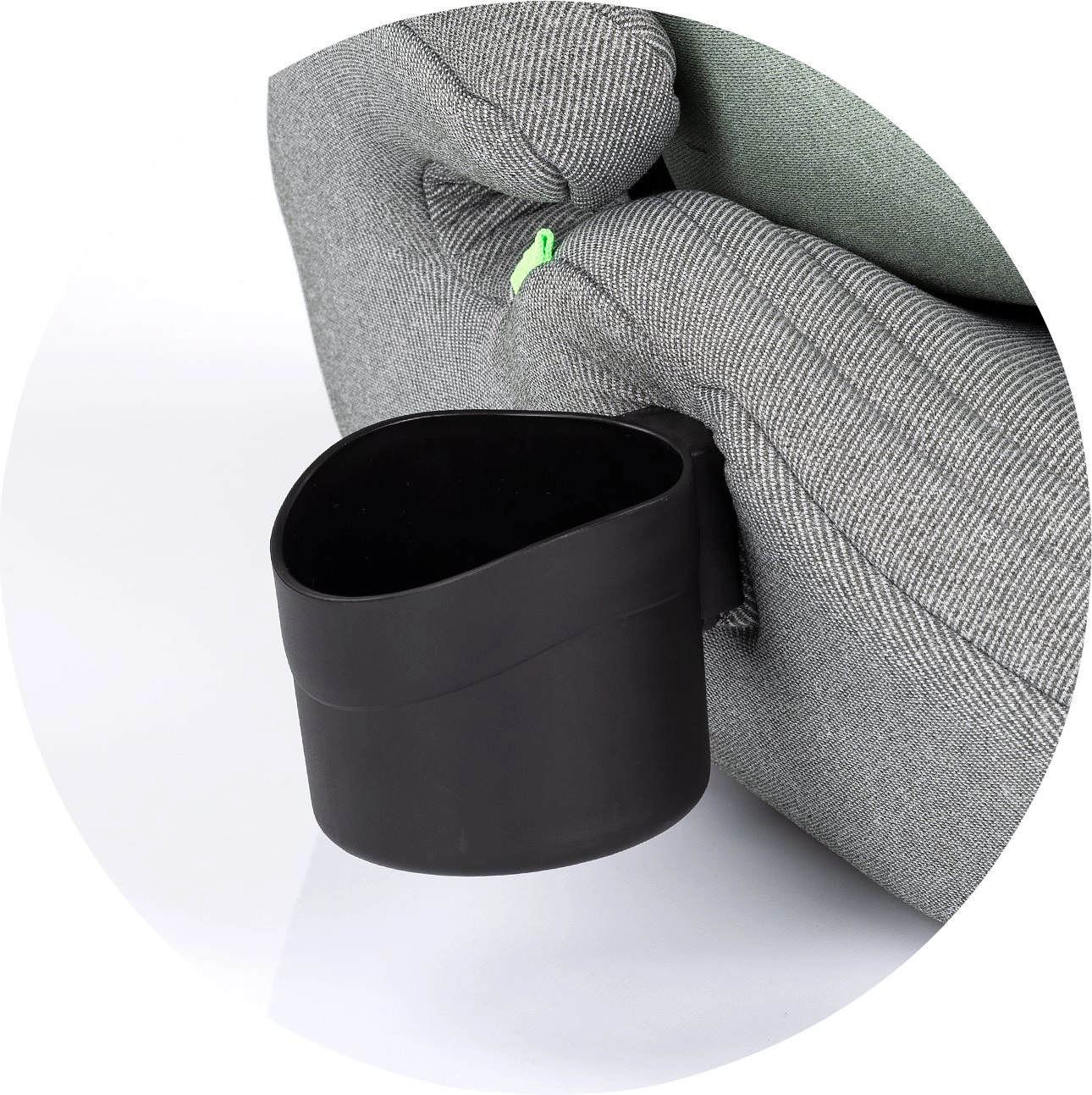 Abnehmbarer und waschbarer Bezug hält den Sitz sauber. Inklusive Getränkehalter für einen leichten Zugriff auf das Getränk.