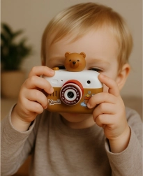 Die interaktive Kapybara-Kamera ist ein verspieltes und lehrreiches Spielzeug, das auf unterhaltsame Weise die Fantasie und die Feinmotorik von Kindern fördert. Sie kombiniert Licht- und Soundeffekte, spielt Melodien ab und projiziert dank des Projektors 8 farbige Bilder an Wand oder Decke. Zudem lernt das Kind englische Bezeichnungen der Bilder, was den natürlichen Spracherwerb unterstützt.