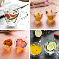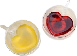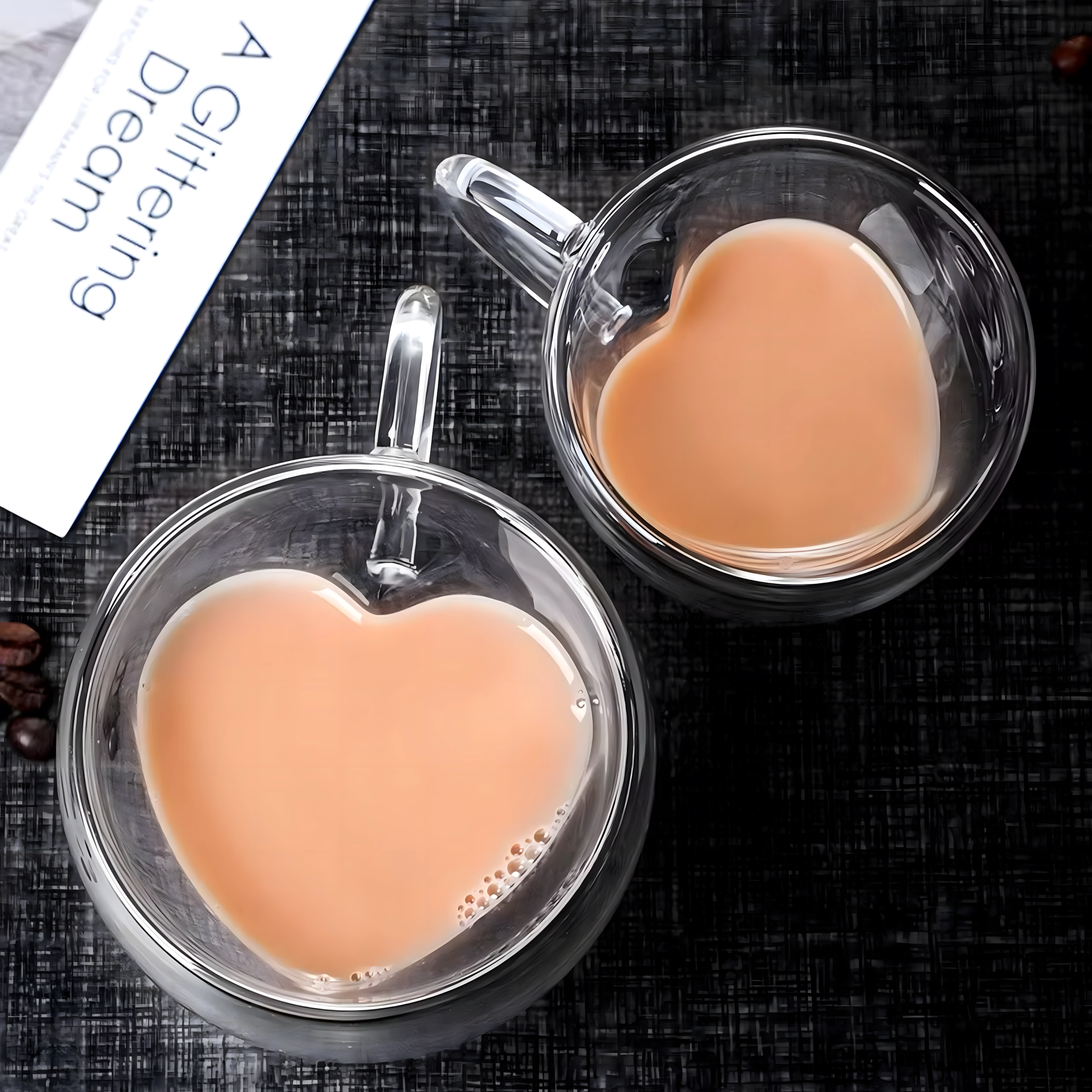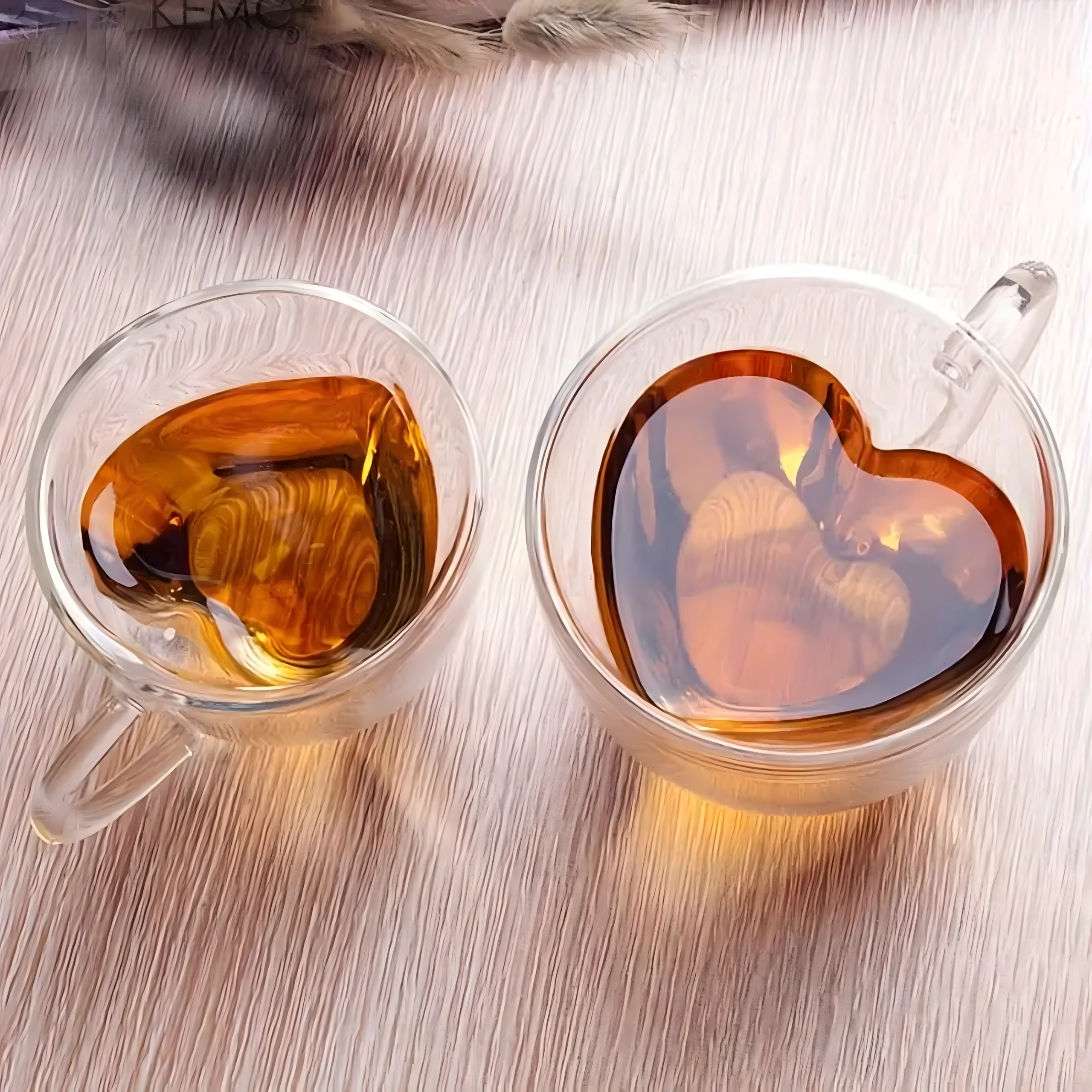 Glasbecher in Herzform 250 ml mit Doppelwand, hitzebeständiges Borosilikatglas