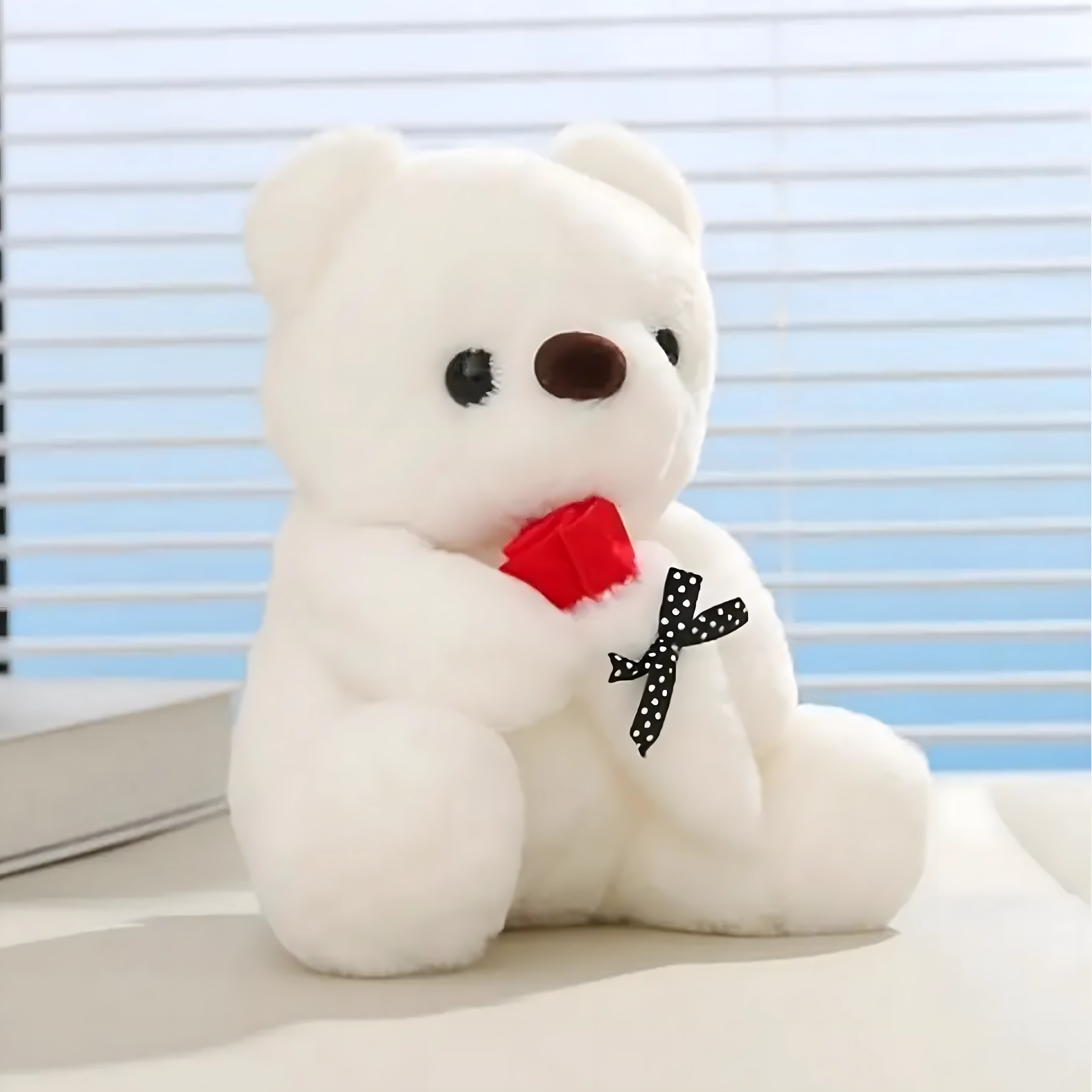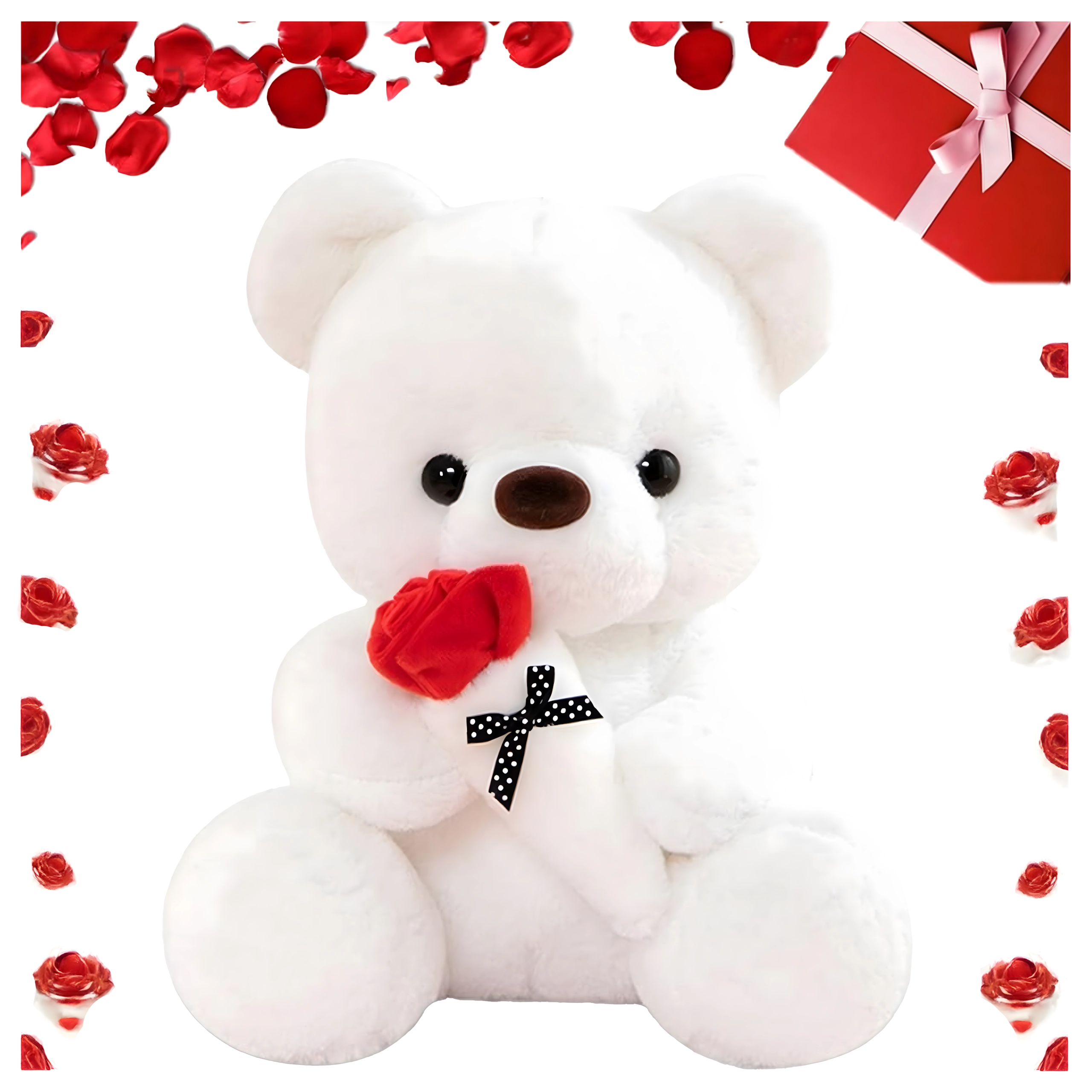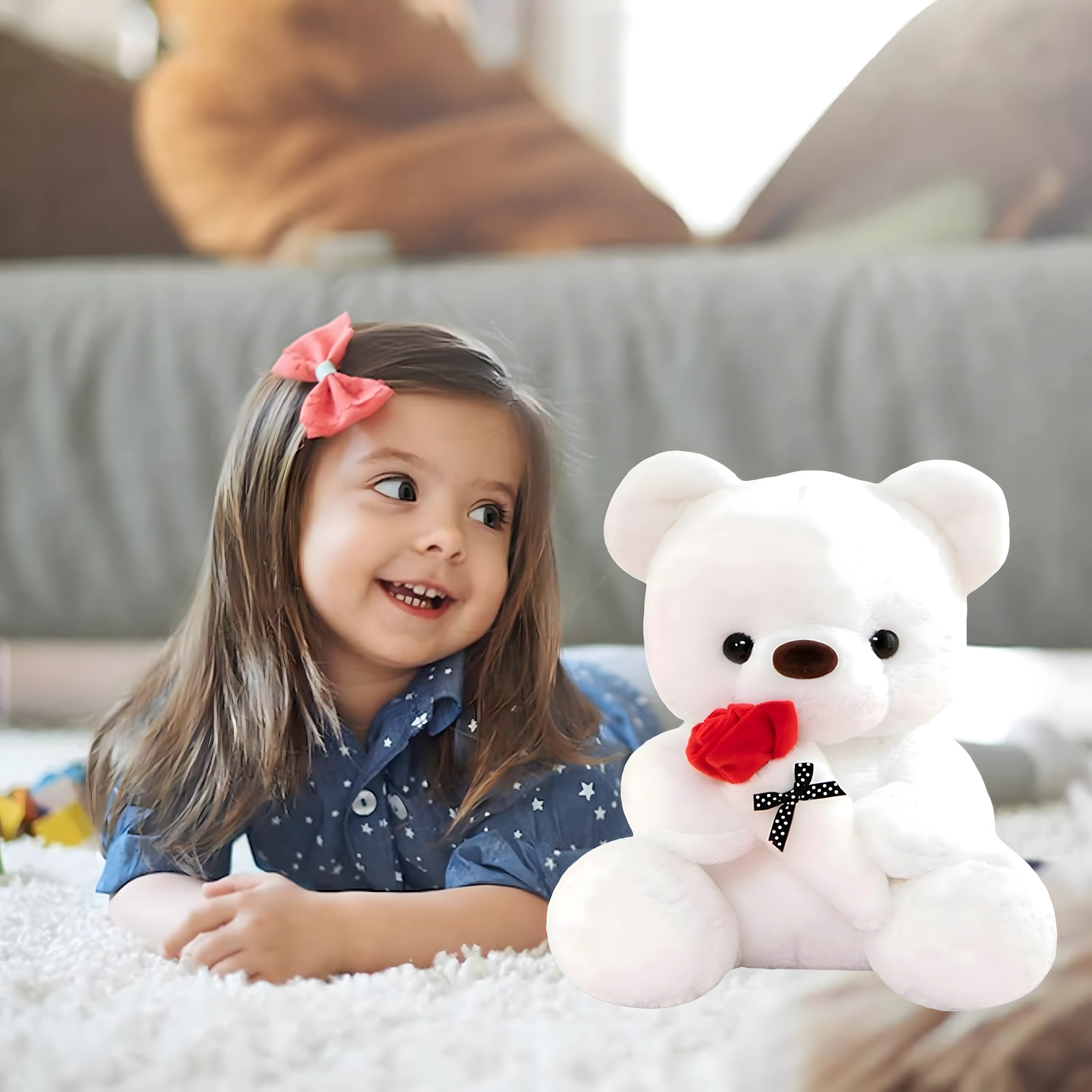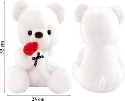 Plüsch Weißer Teddybär 32 cm mit roter Rose und Schleife – Geschenk für Mädchen