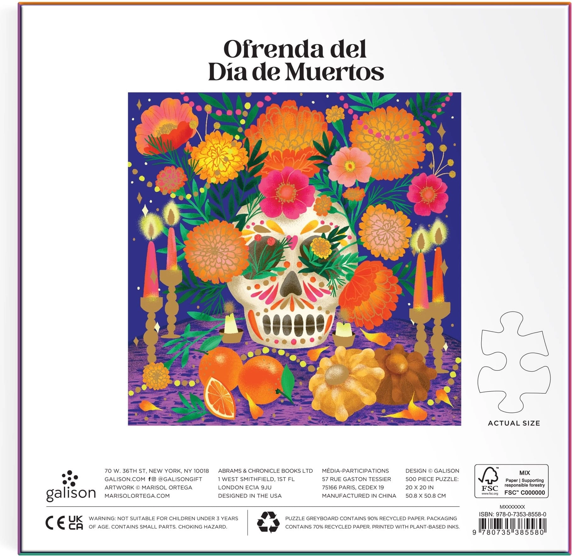 Entdecken Sie ein beeindruckendes metallisches Puzzle mit einem farbenfrohen Motiv, inspiriert von der Tradition des Tags der Toten. Das quadratische Format und präzise gestanzte Teile sorgen für ein flüssiges Puzzelerlebnis und ein visuell ansprechendes Ergebnis, das an jeder Wand hervorsticht.