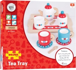 Tee für zwei? Dieses farbenfrohe Teeset aus Holz enthält alles, was Kinder zum Bewirten brauchen: Teekanne mit Deckel, zwei Tassen mit Untertassen, Zuckerdose mit Deckel, Milchkanne, zwei Löffel und ein stabiles Tablett. Dank der robusten Verarbeitung und glatten Kanten ist das Spiel sicher und angenehm.