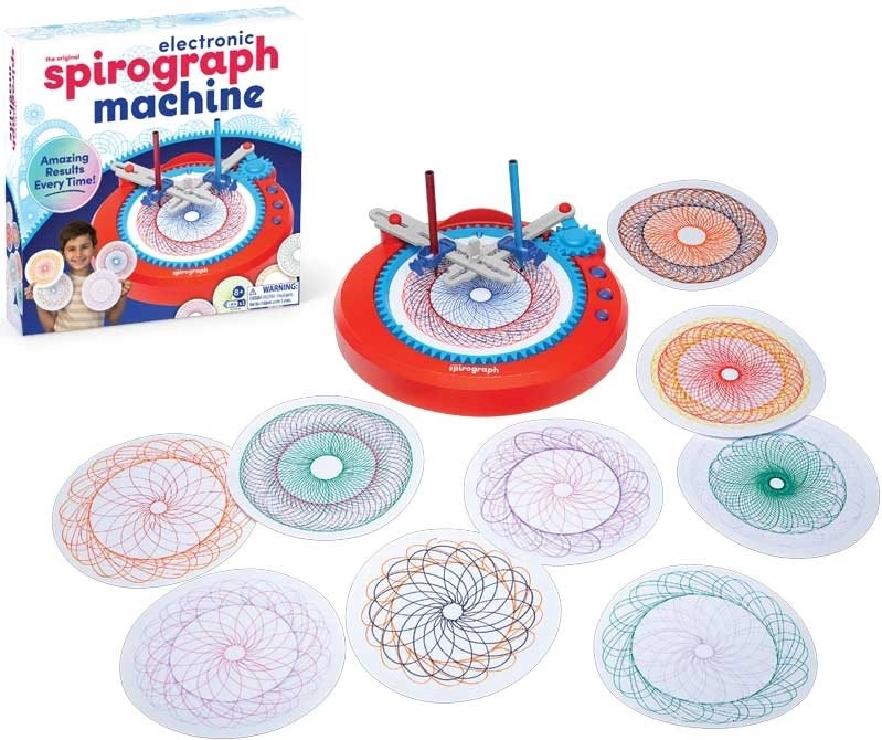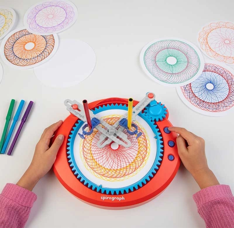 Wählen Sie eine Kombination aus Zahnrädern, stellen Sie die Stiftposition ein und wählen Sie den Modus – den Rest übernimmt die Elektronik. Dank unzähliger Möglichkeiten wird jedes Bild zum Unikat, egal ob von Kindern oder Erwachsenen gestaltet.