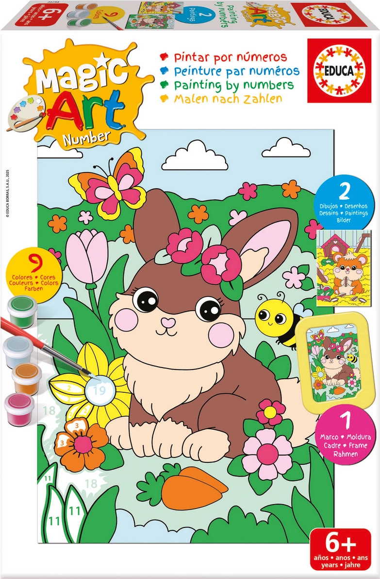 Entdecken Sie einfaches und unterhaltsames Malen mit dem Set EDUCA Malen nach Zahlen – Kaninchen und Hamster. Werden Sie für einen Moment zum Maler und gestalten Sie Ihr eigenes Bild nach Zahlen. Das Set bietet eine einfache Vorgehensweise, fördert Konzentration und Koordination und enthält vollständiges Zubehör für sofortiges Kreativsein.