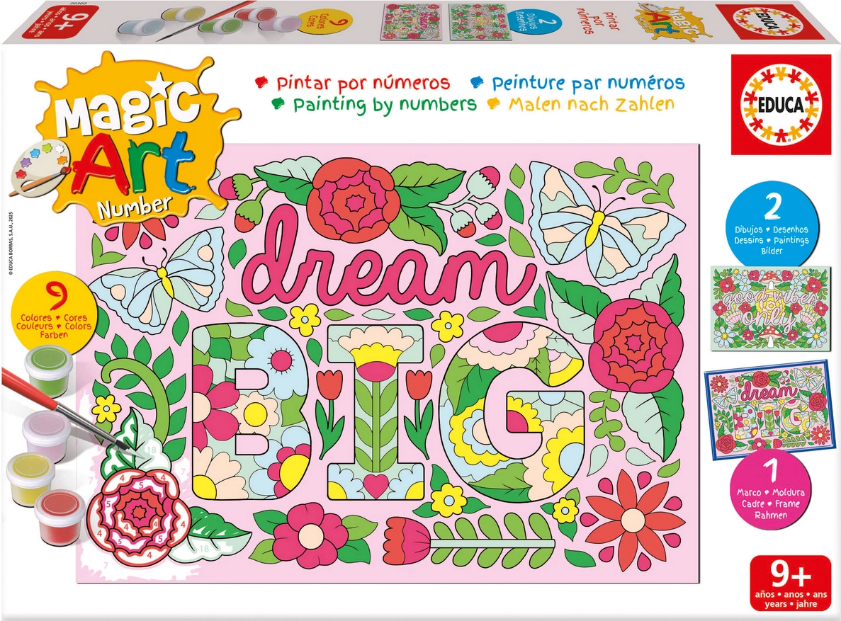 Entdecken Sie die Freude am Gestalten mit dem Set Educa Malen nach Zahlen – Blumen. Dank der vorgedruckten Segmente und der mitgelieferten Farben ist das Malen einfach, unterhaltsam und auch für Anfänger geeignet. Die Aktivität fördert Konzentration, Koordination und Farberkennung.
