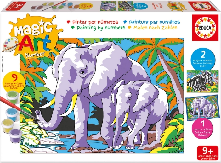 Werden Sie für einen Moment zum Künstler und gestalten Sie Ihre eigenen dekorativen Bilder mit Tiermotiv. Jede Zahl auf der Leinwand entspricht einer bestimmten Farbe, sodass der Ablauf intuitiv ist und das Ergebnis sowohl Anfänger als auch Fortgeschrittene begeistert. Das Set von EDUCA ist ideal für entspannte Momente, zur Förderung der Kreativität und als originelles Geschenk.
