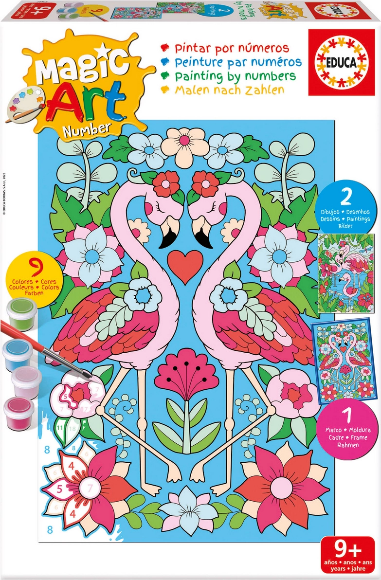 Entdecken Sie kreativen und entspannenden Spaß mit dem Malen-nach-Zahlen-Set von Educa. Dieses Set mit dem Motiv Flamingos ist ideal für Kinder und Erwachsene – folgen Sie einfach den nummerierten Bereichen und gestalten Sie Ihr eigenes Bild ganz ohne Vorkenntnisse. Die Aktivität fördert Konzentration, Bewegungskoordination und Farbwahrnehmung.