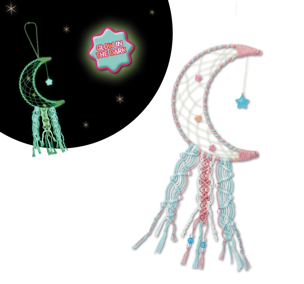 Mit diesem originellen Set gestalten Kinder im Handumdrehen ihren eigenen Traumfänger in Mondform. Nach dem Aufladen schimmert er sanft und eignet sich perfekt über dem Bett, am Fenster oder an der Wand – für eine gemütliche Atmosphäre.