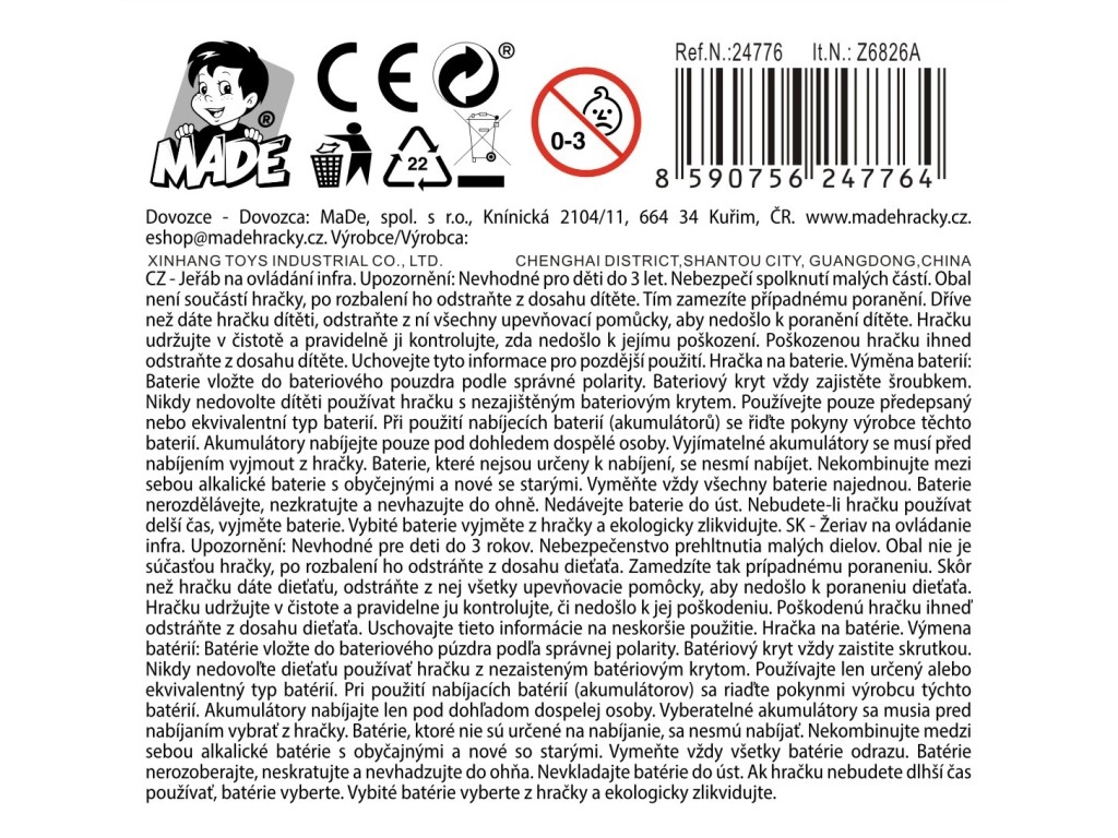 Der Open‑Touch‑Controller sorgt für eine intuitive und flüssige Steuerung. Der Kran wird mit Li‑Ion 3,7 V / AA Batterien betrieben und wird in einer offenen Verpackung in einer einfarbigen Ausführung geliefert.