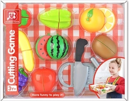 Das Set enthält ein praktisches Schneidebrett und ein sicheres Kunststoffmesser, mit denen Kinder gefahrlos Kochen und die Zubereitung von Speisen nachspielen können. Das Spiel fördert auf natürliche Weise die Feinmotorik, die Hand-Auge-Koordination und unterstützt das Erlernen von Farben und Formen.