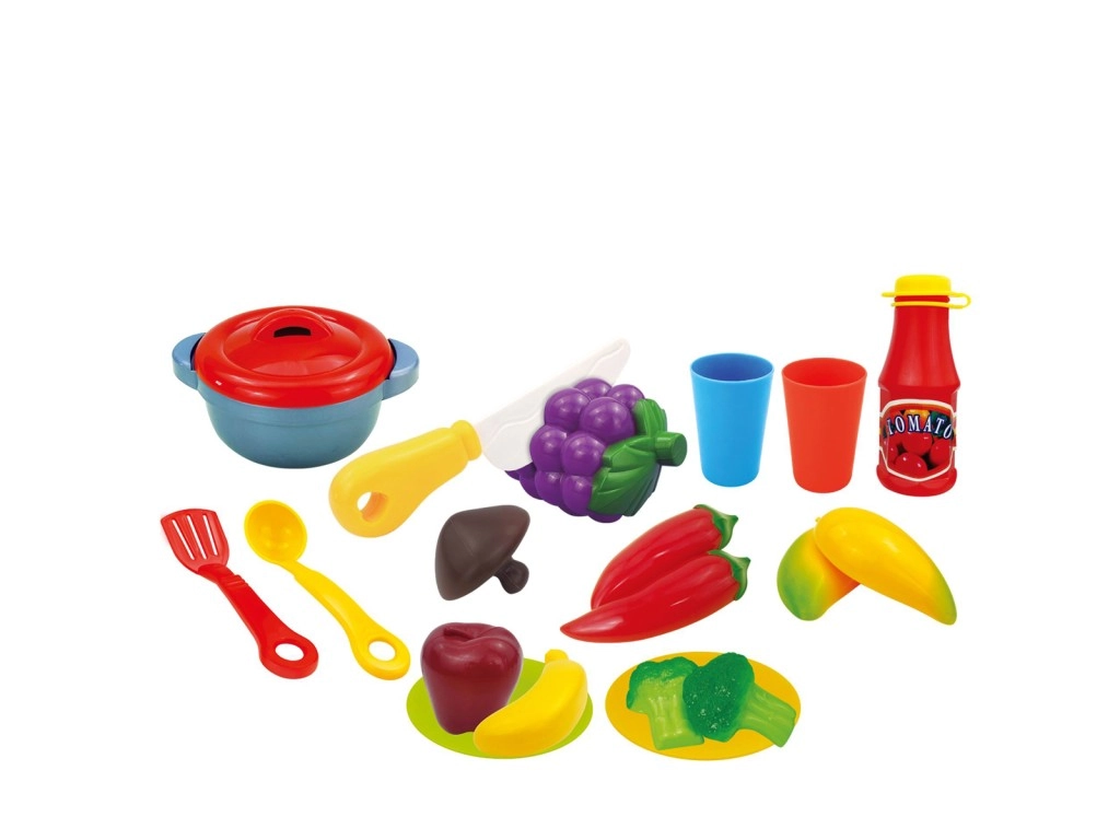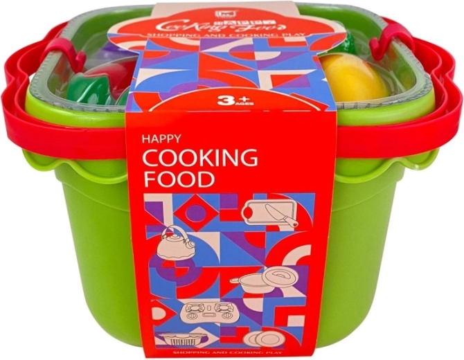 Ideal für Kinderküchen zu Hause, Kindergärten und Spielecken. Das Set ist leicht, einfach zu transportieren und schnell direkt im Korb aufgeräumt.