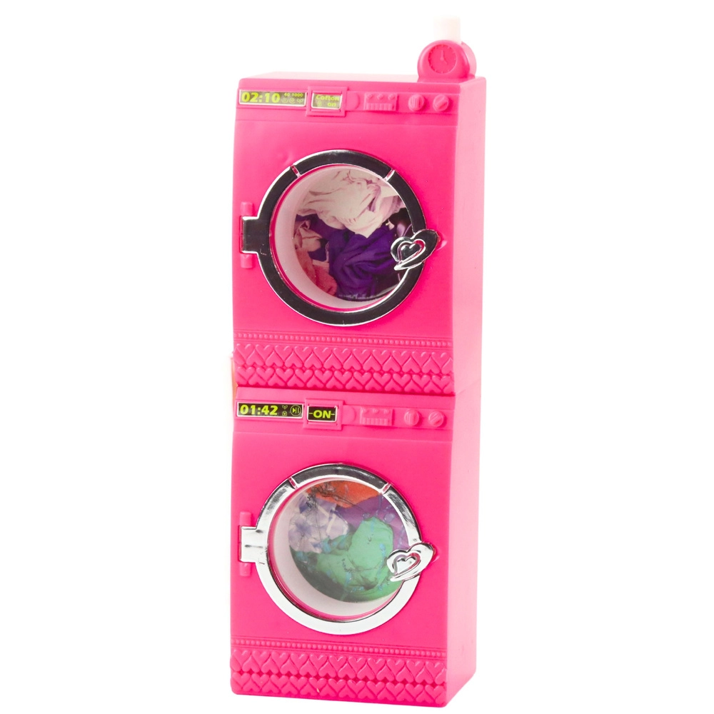 Schenken Sie Kindern ihre eigene Mini‑Waschküche, die echte Haushaltsausstattung realistisch nachbildet. Per Knopfdruck dreht sich die Trommel in der Waschmaschine, der Trockner ergänzt die Pflege der „Outfits“ und der Standkleiderständer mit Bügeln hilft bei der Ordnung. Das rosa‑weiße Design fällt sofort ins Auge und lädt zu kreativem Spiel ein.