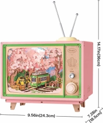 Entdecken Sie den Zauber des japanischen Frühlings in einer designstarken Spieluhr in Form eines Retro-Fernsehers. Zarte Pastelltöne, die bewegte Straßenbahn und blühende Kirschblüten schaffen eine entspannende Atmosphäre mit einem Hauch Nostalgie. Dank der LED-Lichter und der Melodien „Minuet in G Major“ und „Jesu, Joy of Man’s Desiring“ erhellt dieses Modell jedes Interieur – vom Wohnzimmer bis zum Arbeitszimmer.